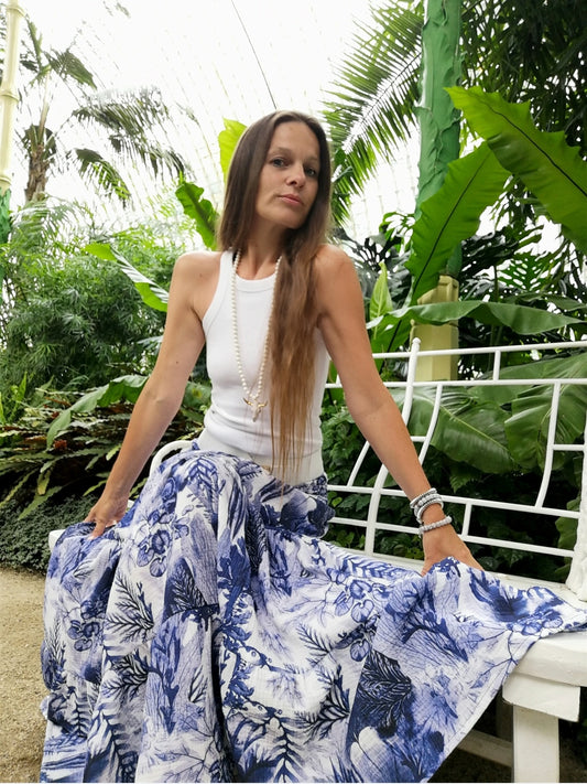 EXLUSÍVNÍ MAXI SUKNĚ ASYMETRICKÁ S DVOJITÝM VOLÁNEM