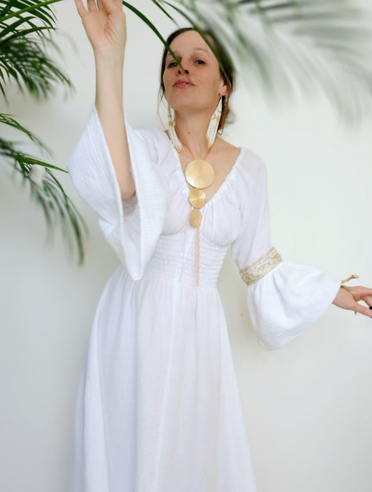 PŮVABNÉ SNĚHOBÍLÉ ŠATY -POSVÁTNÁ ŽENSKÁ ESENCE