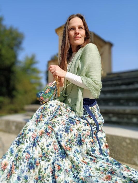 MAXI SUKNĚ KASKÁDOVITÁ MUŠELÍNOVÁ