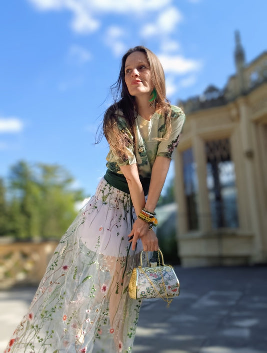 MAXI SUKNĚ MUŠELÍNOVÁ TULIPÁNY