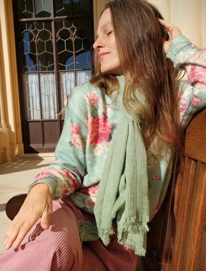 HEBKÝ PLÉD LEN/ BAVLNA BARVA JEMNÁ MINT
