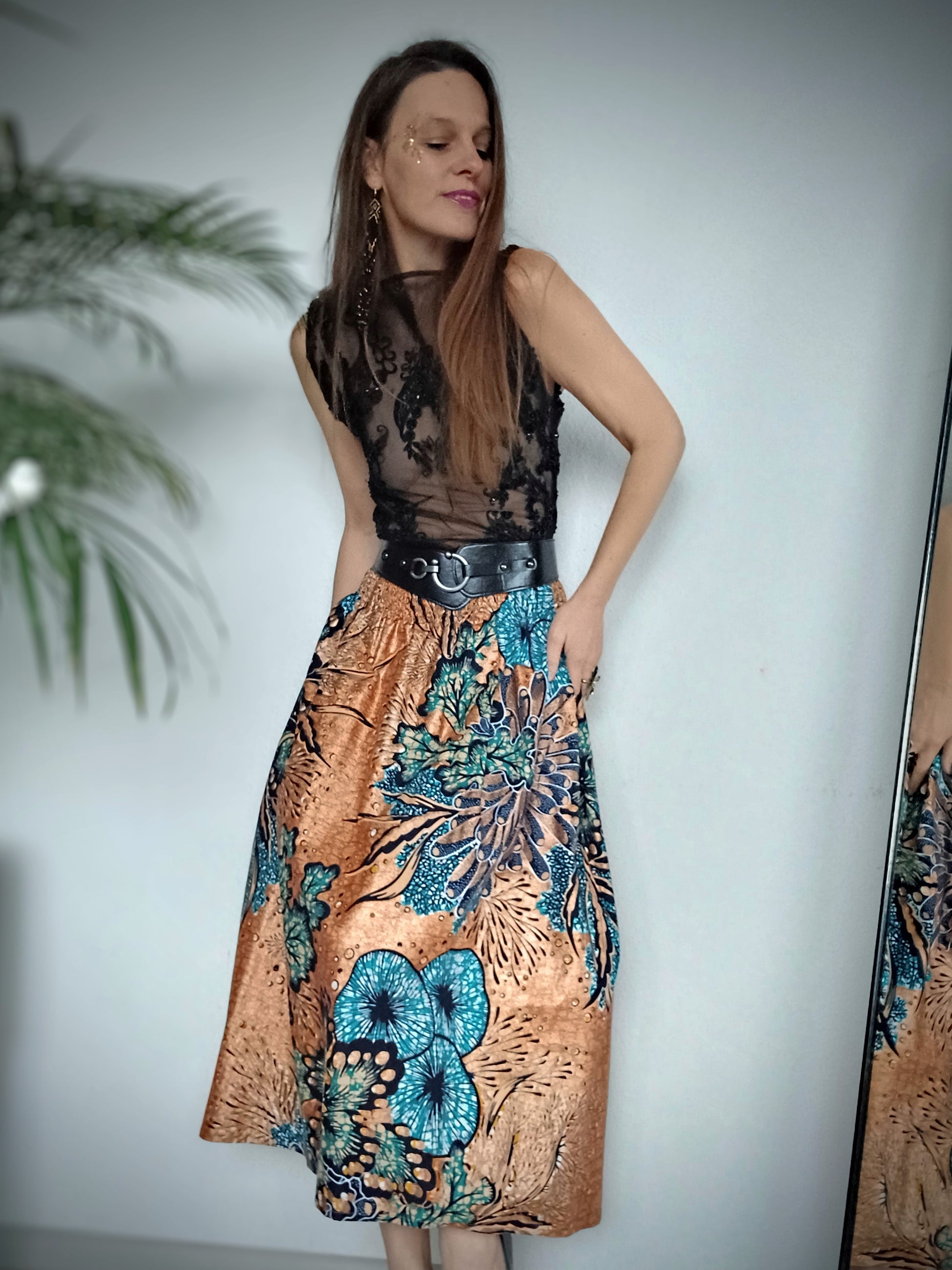 MĚDĚNÁ NÁDHERNÁ EXLUSÍVNÍ SUKNĚ S KAPSAMI