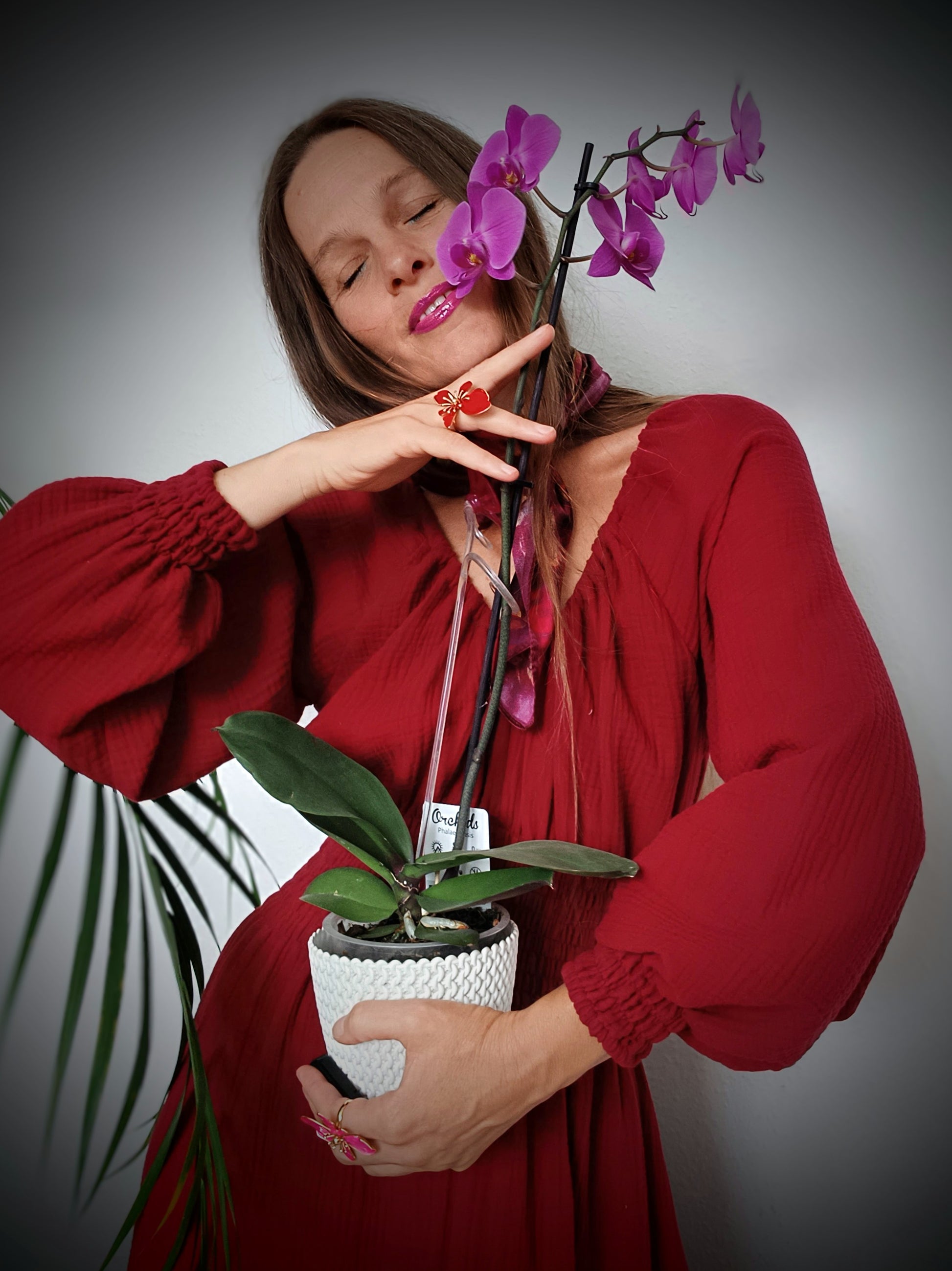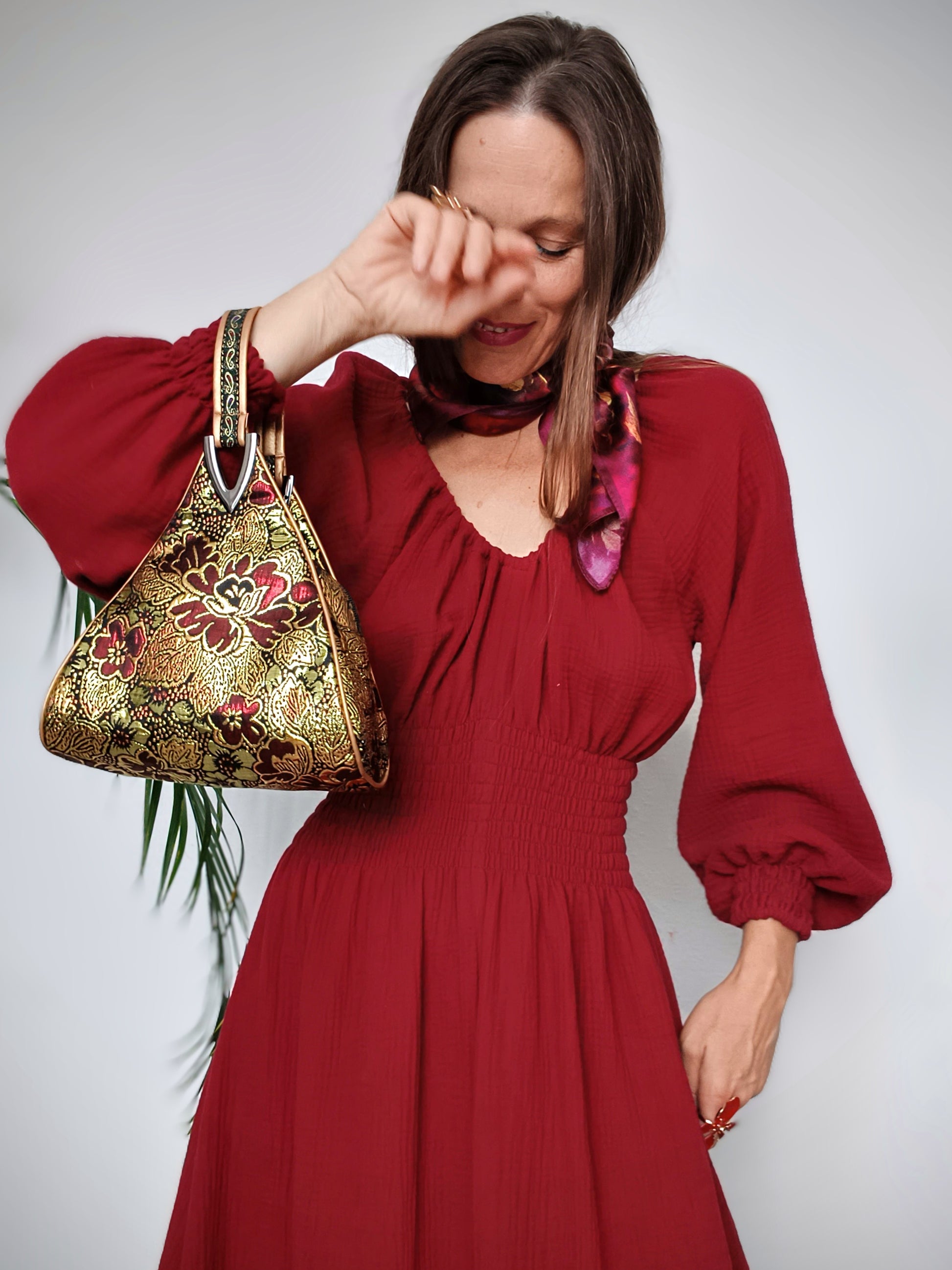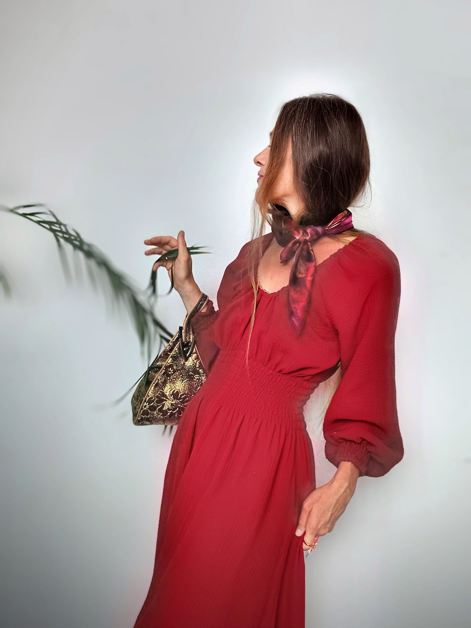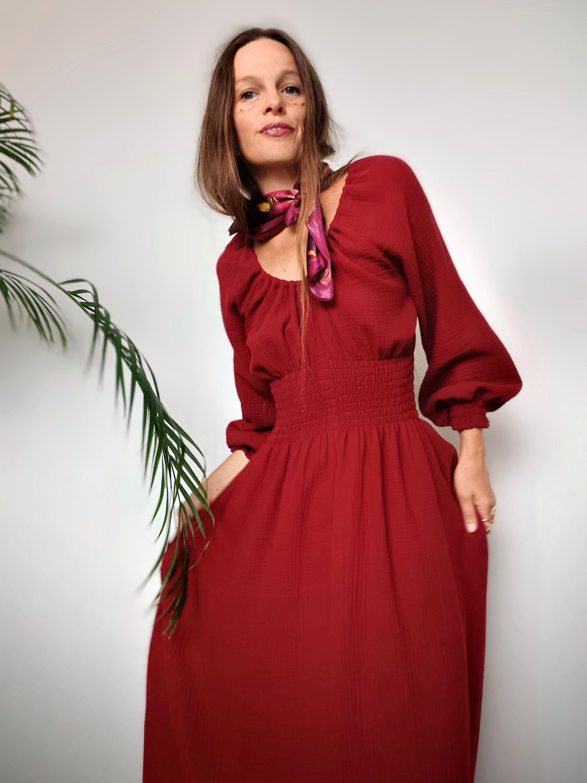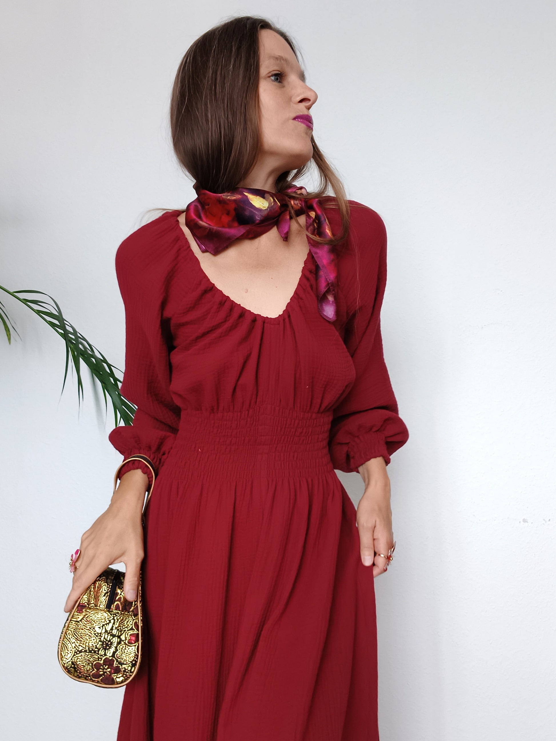 RED WINE MAXI ŠATY MUŠELÍN ORGANIC