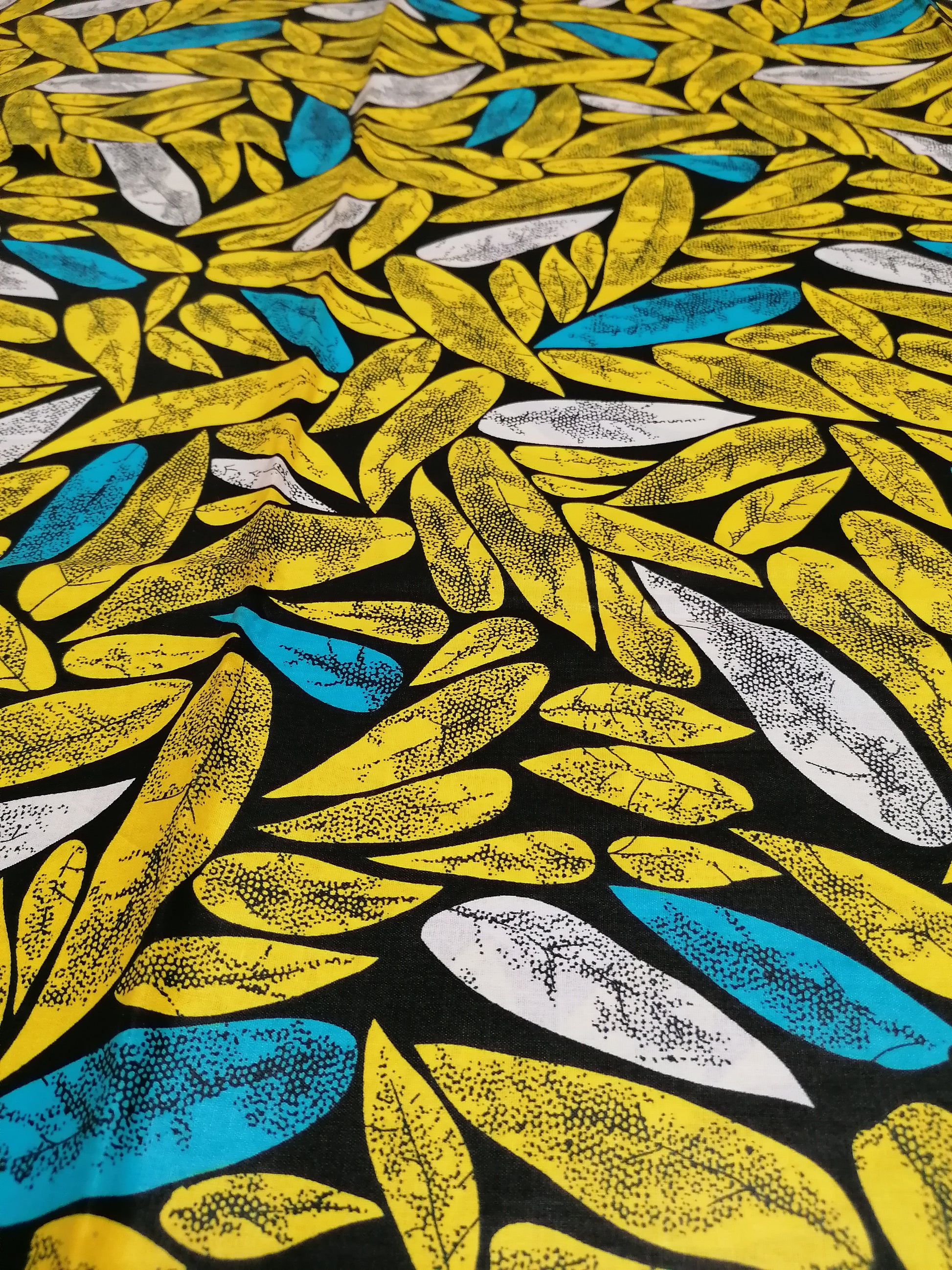Africké látky tužší, zářivé listy na černé