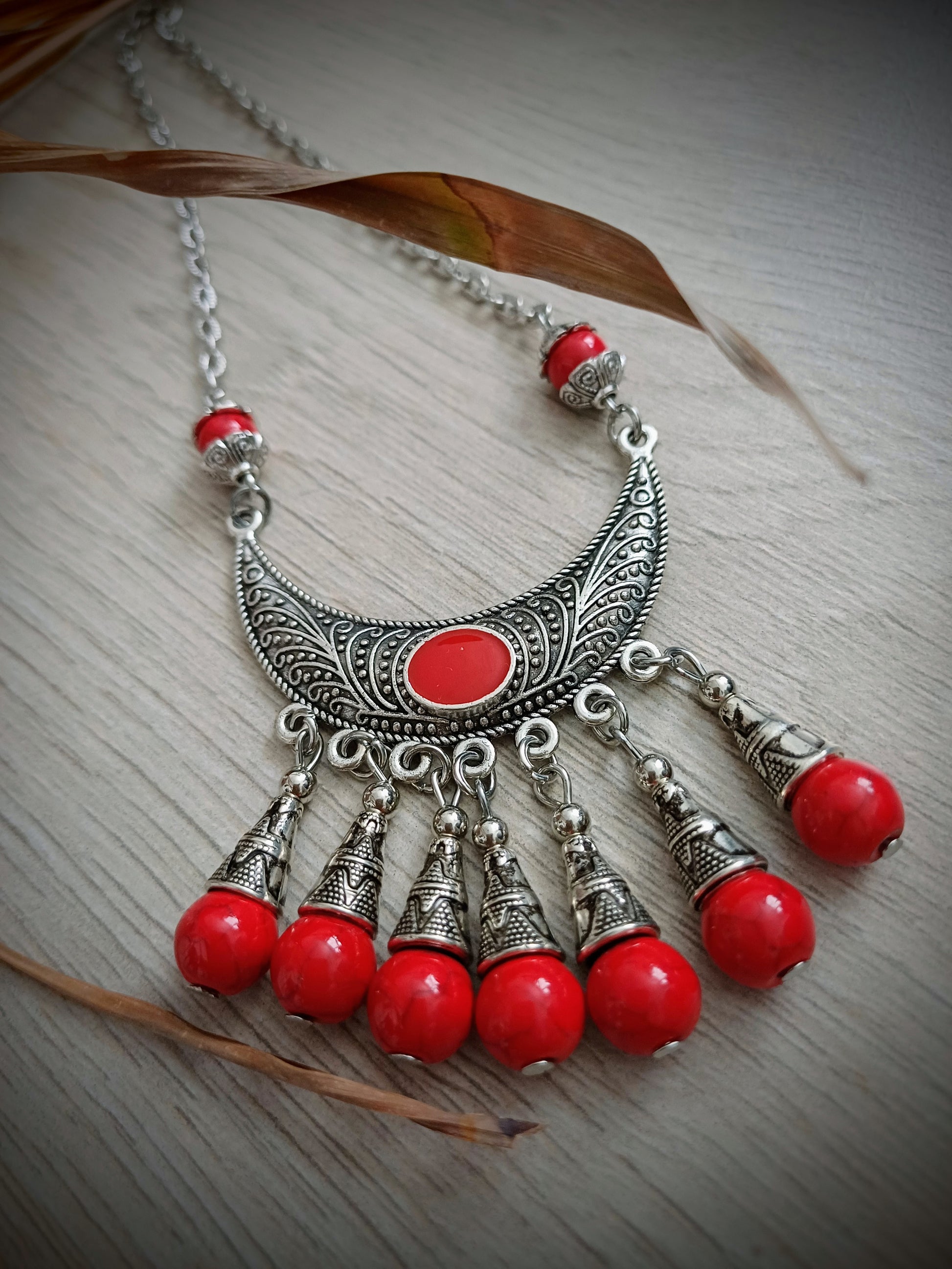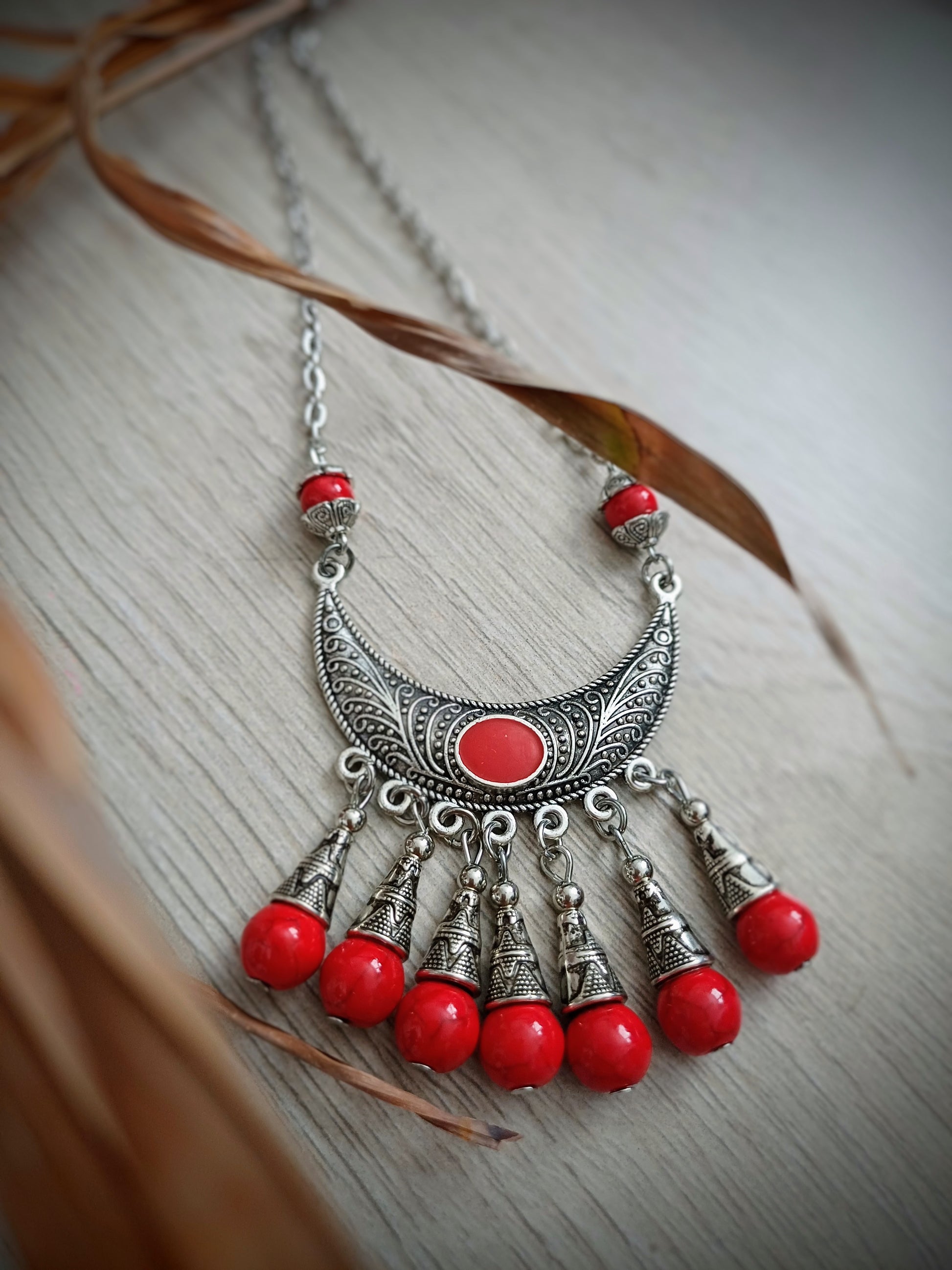 BOHO NÁHRDELNÍK ČERVENÝ