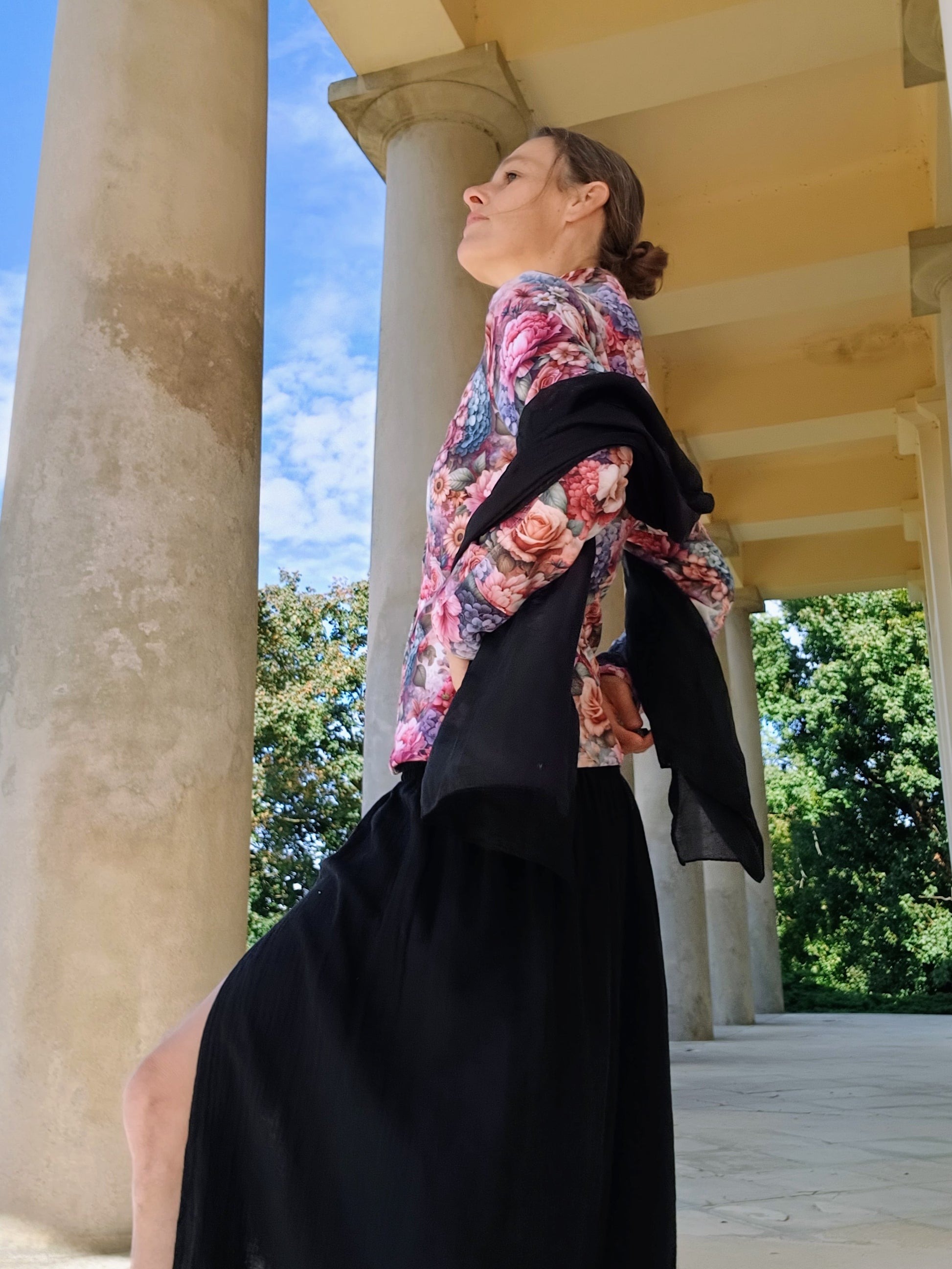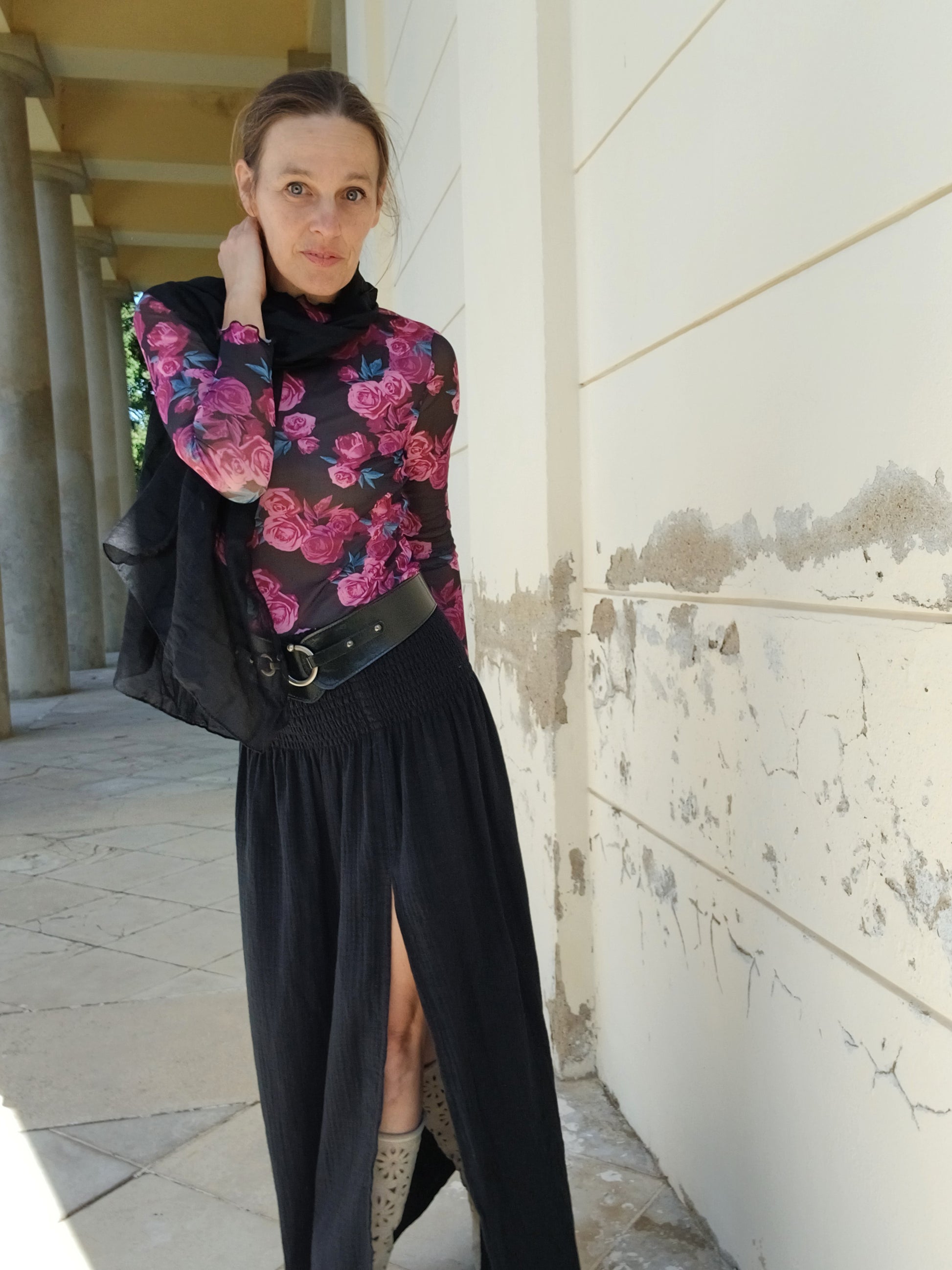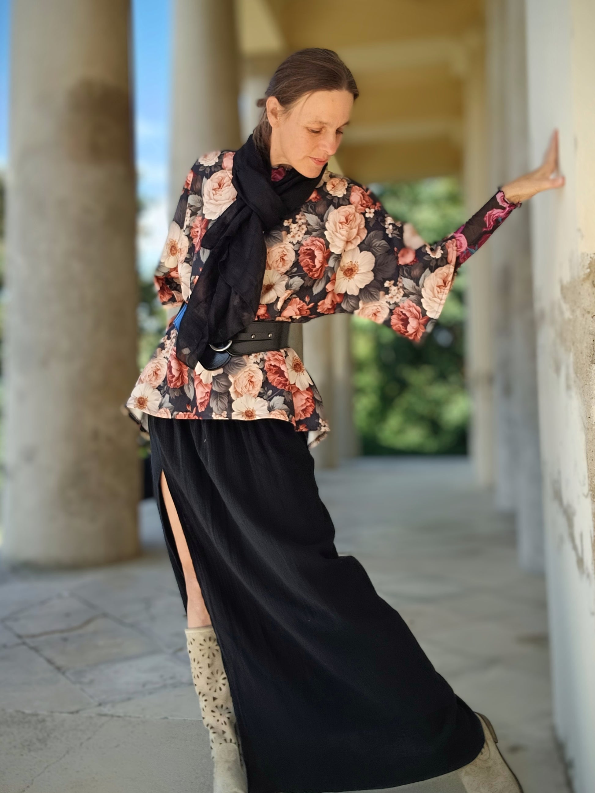 ČERNÁ DLOUHÁ SUKNĚ MUŠELÍNOVÁ S ROZPARKEM