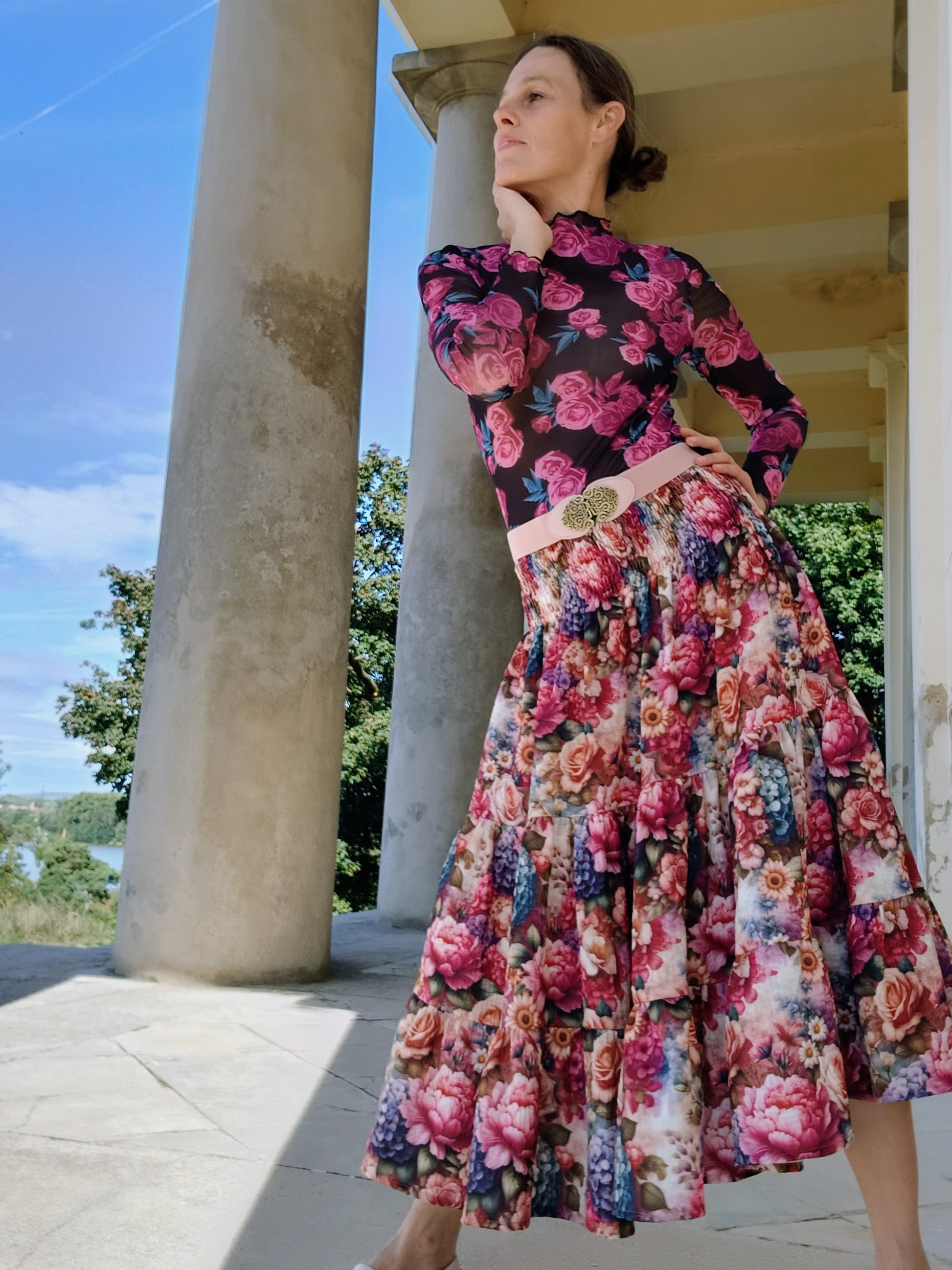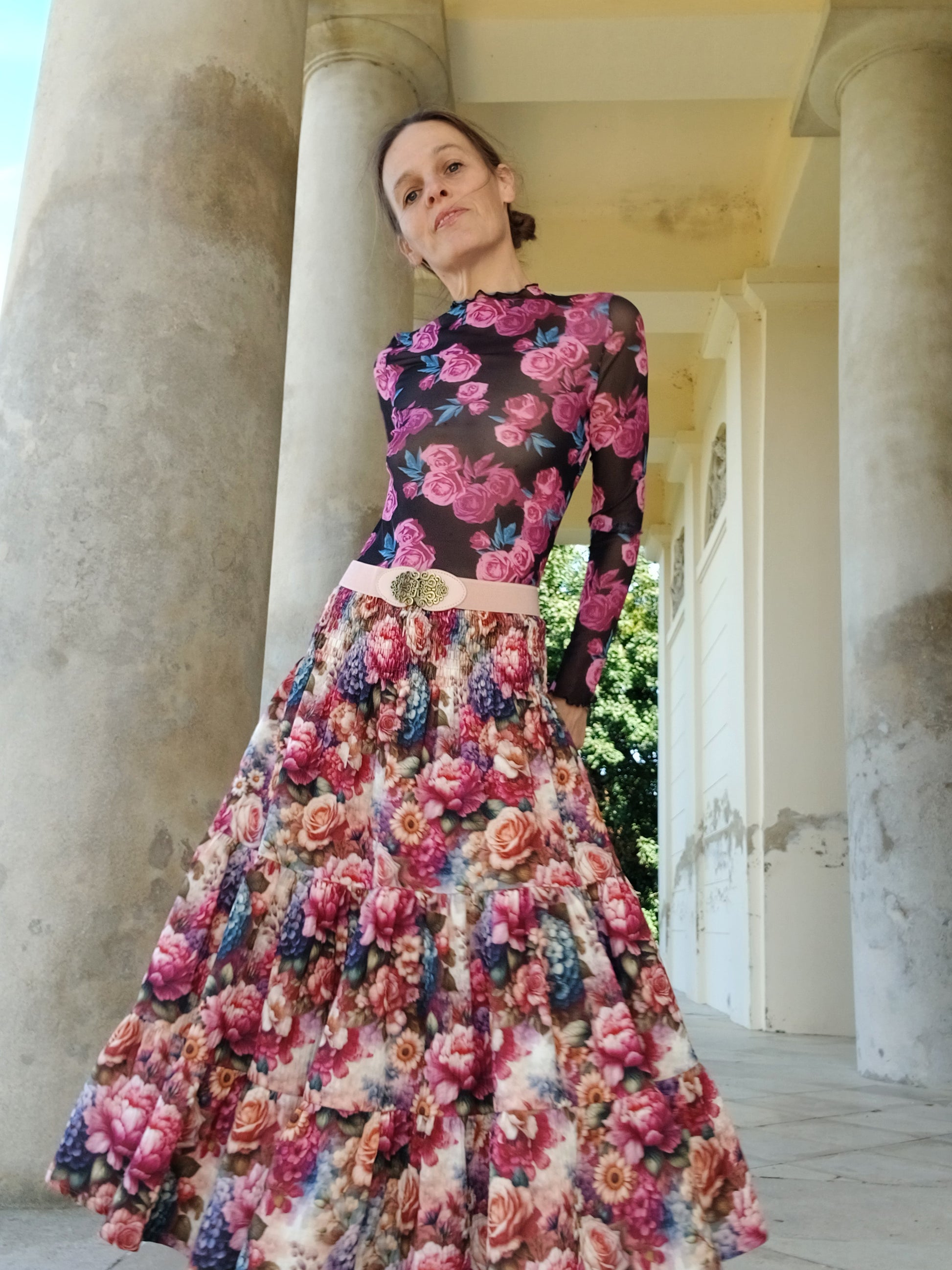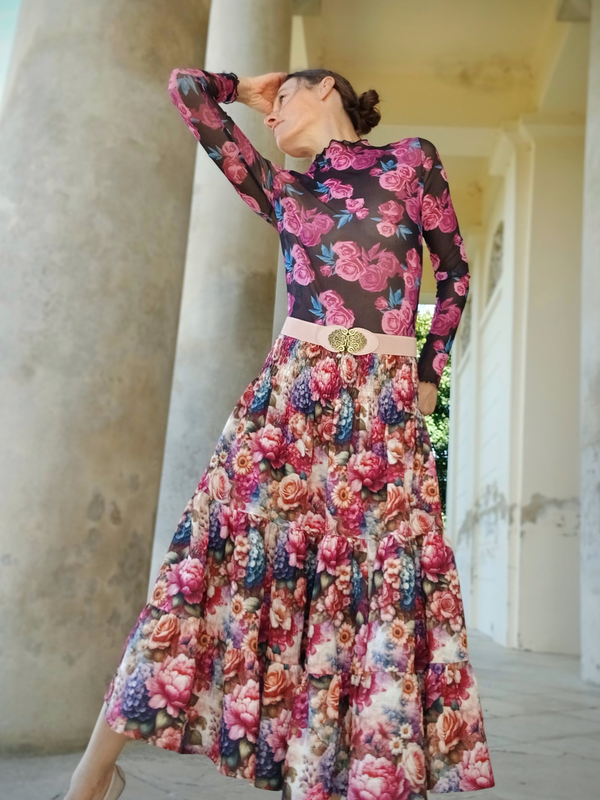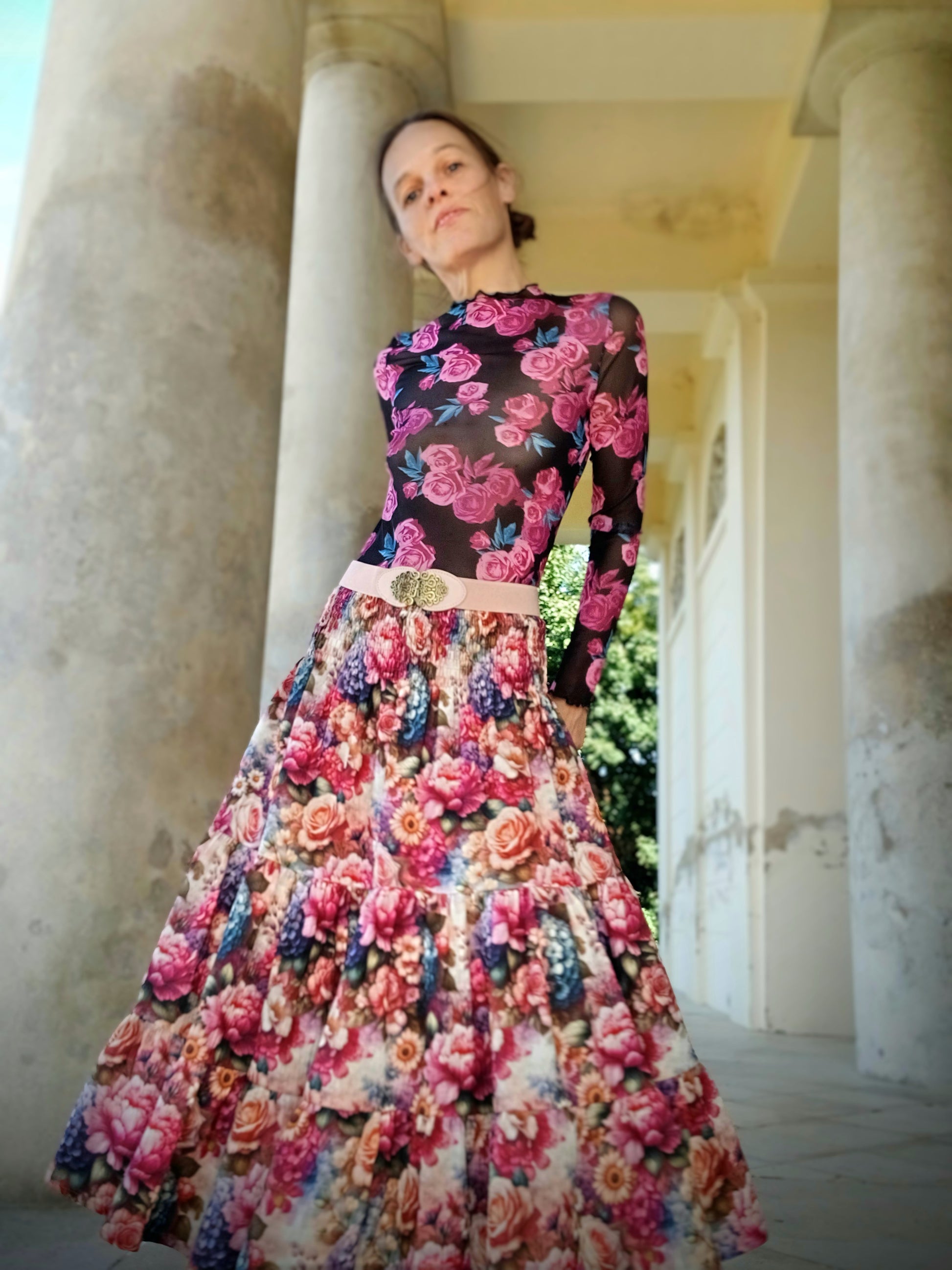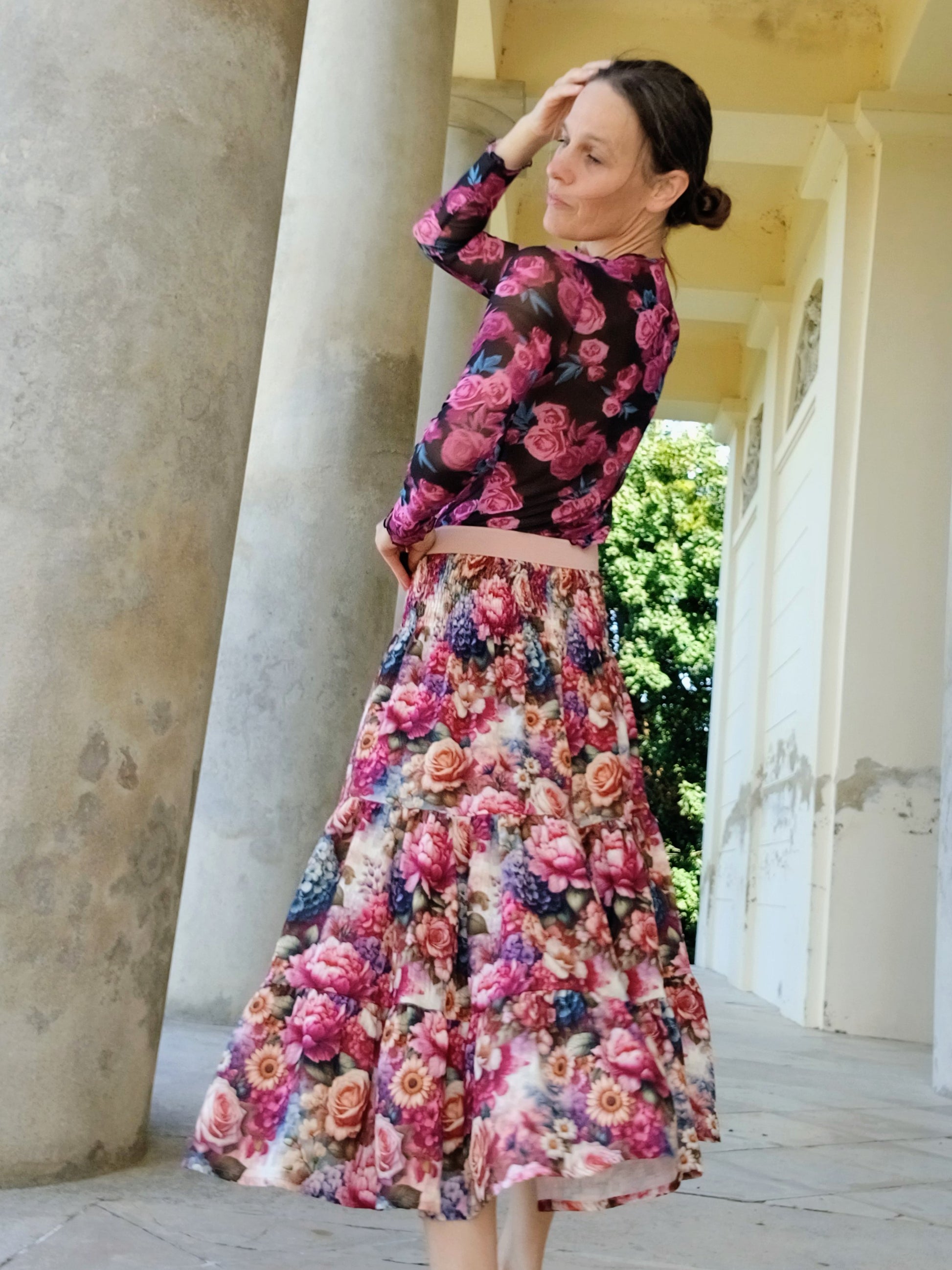 EXLUSÍVNÍ SUKNĚ V MIDI DÉLCE KASKÁDOVITÁ