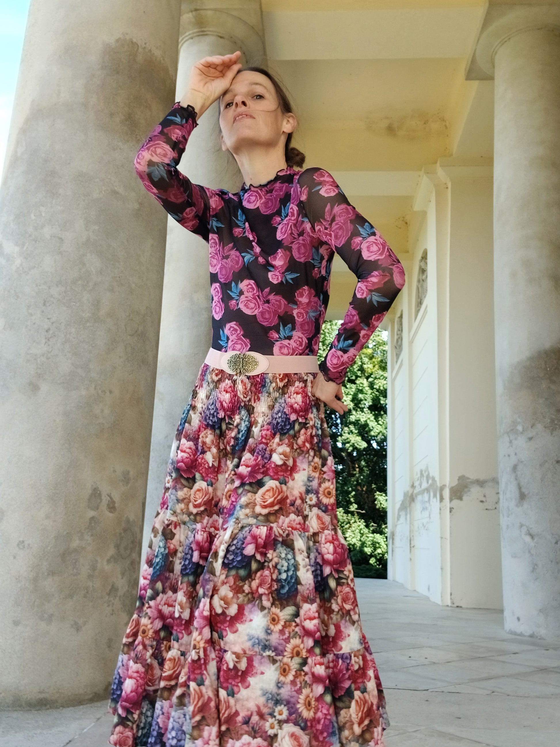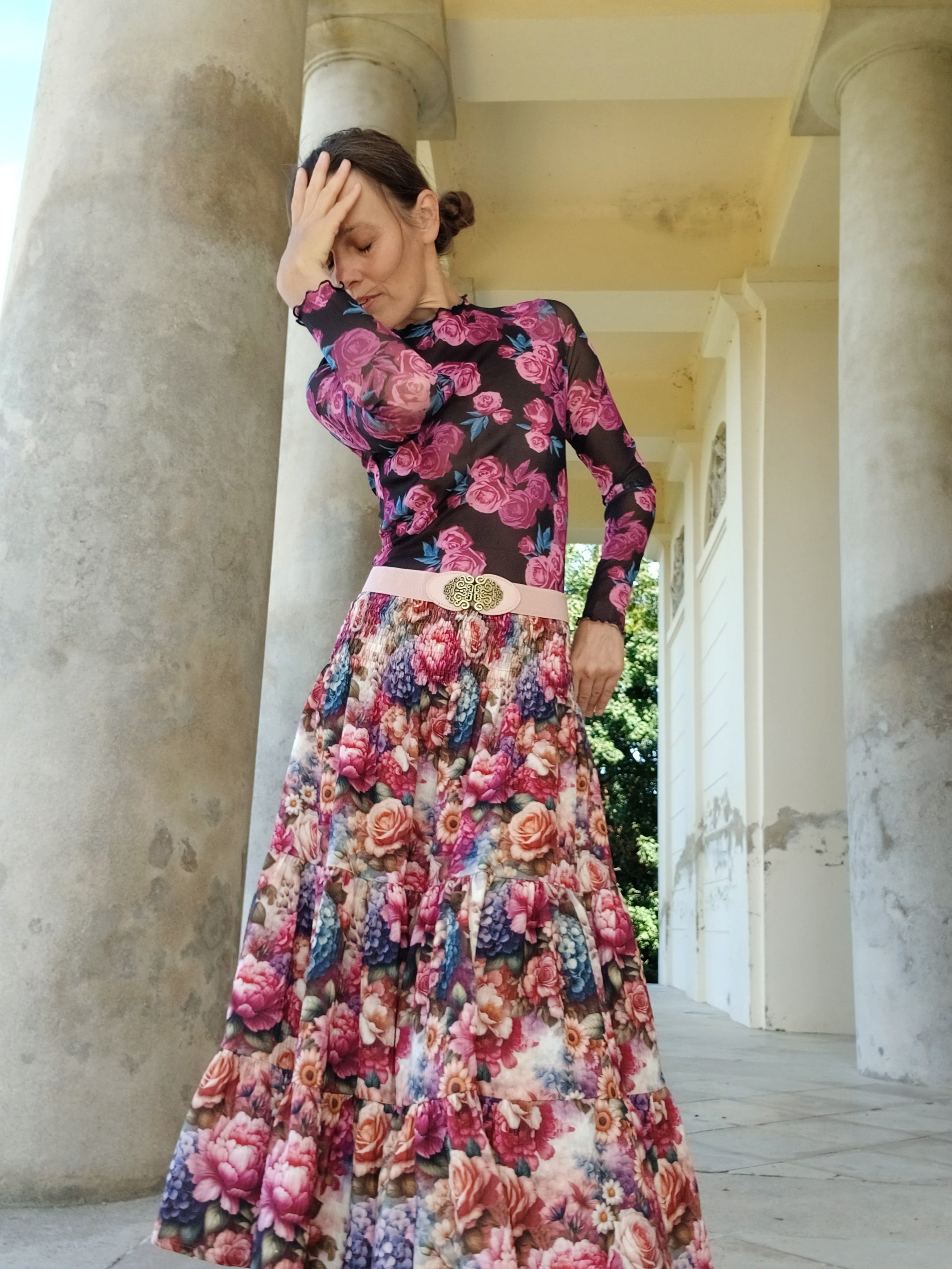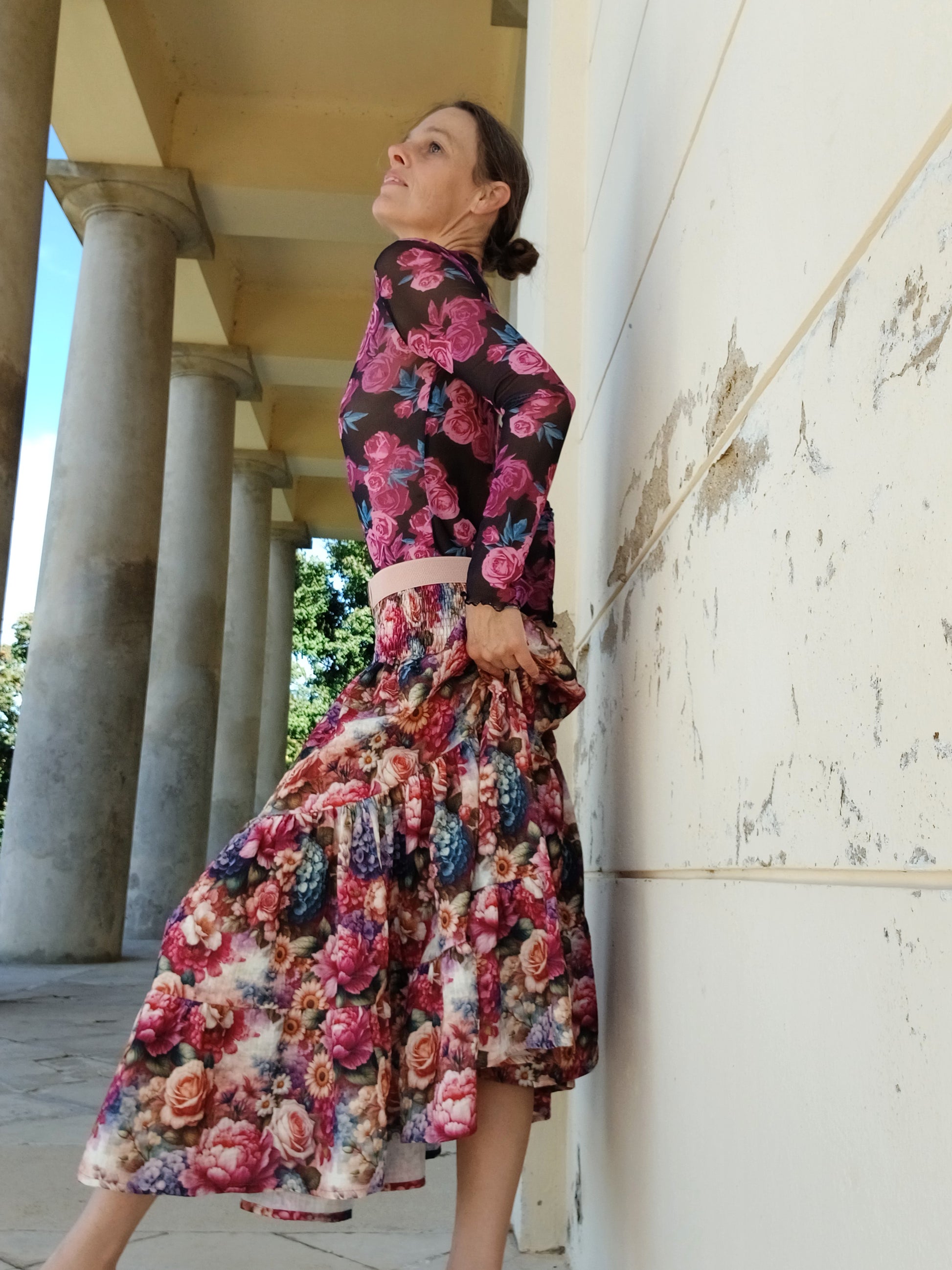 Materiál mušelín vytvářející překrásné vlnění sukně při chůzi, právě díky velkému objemu spodního volánu