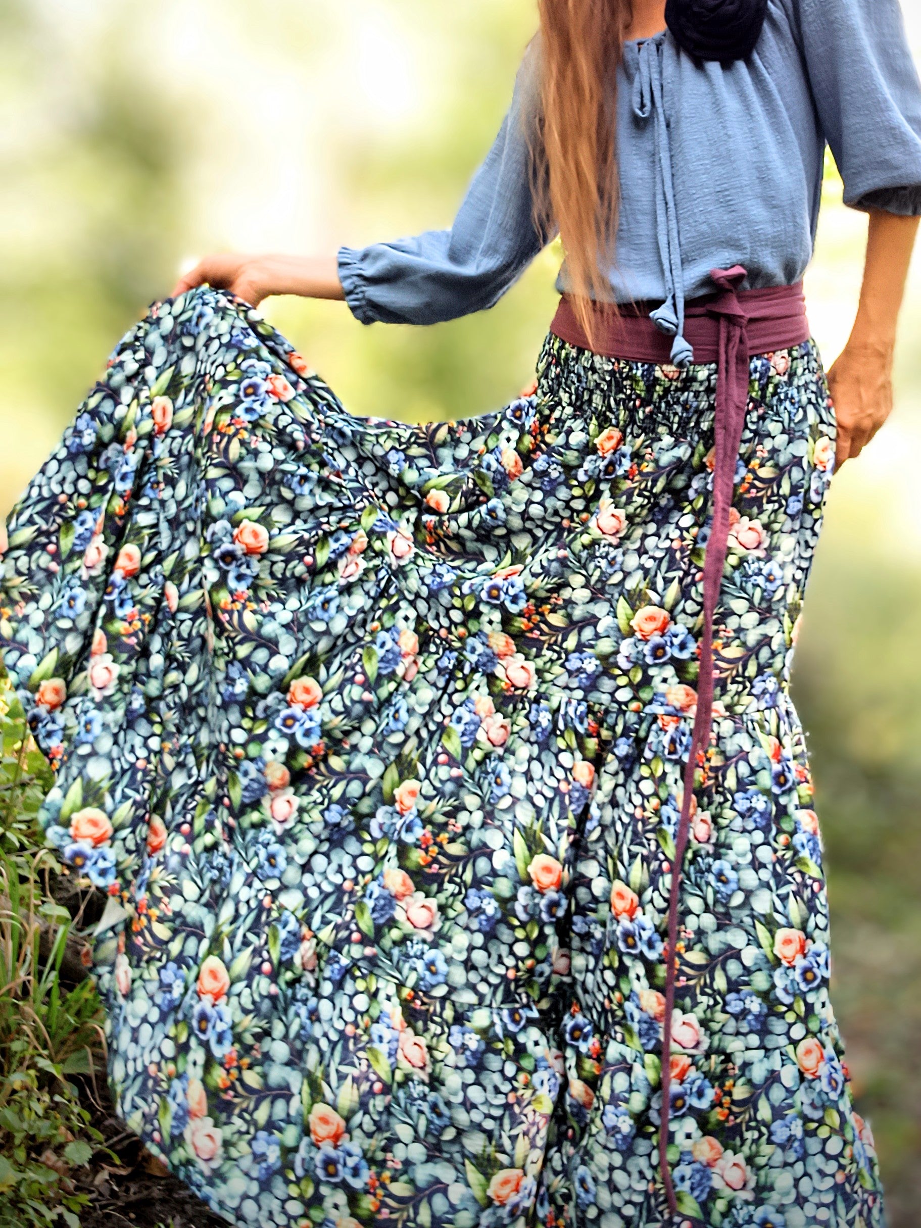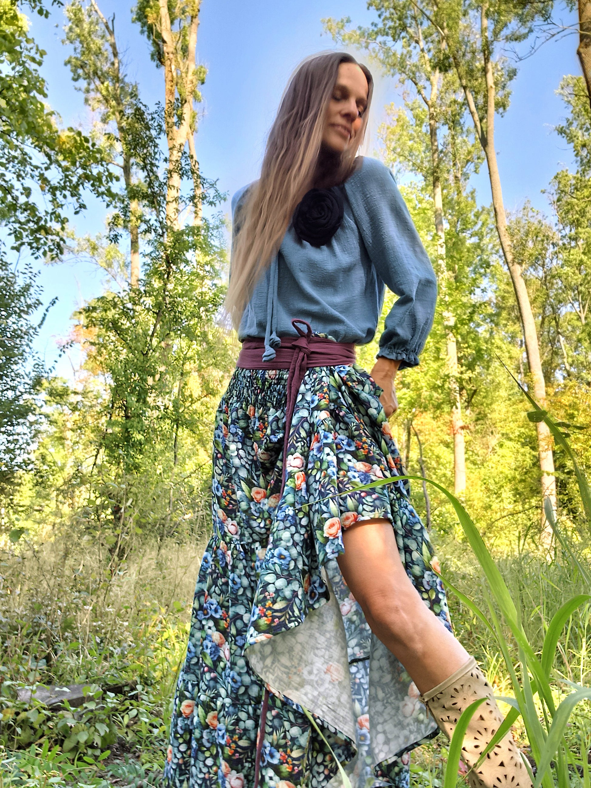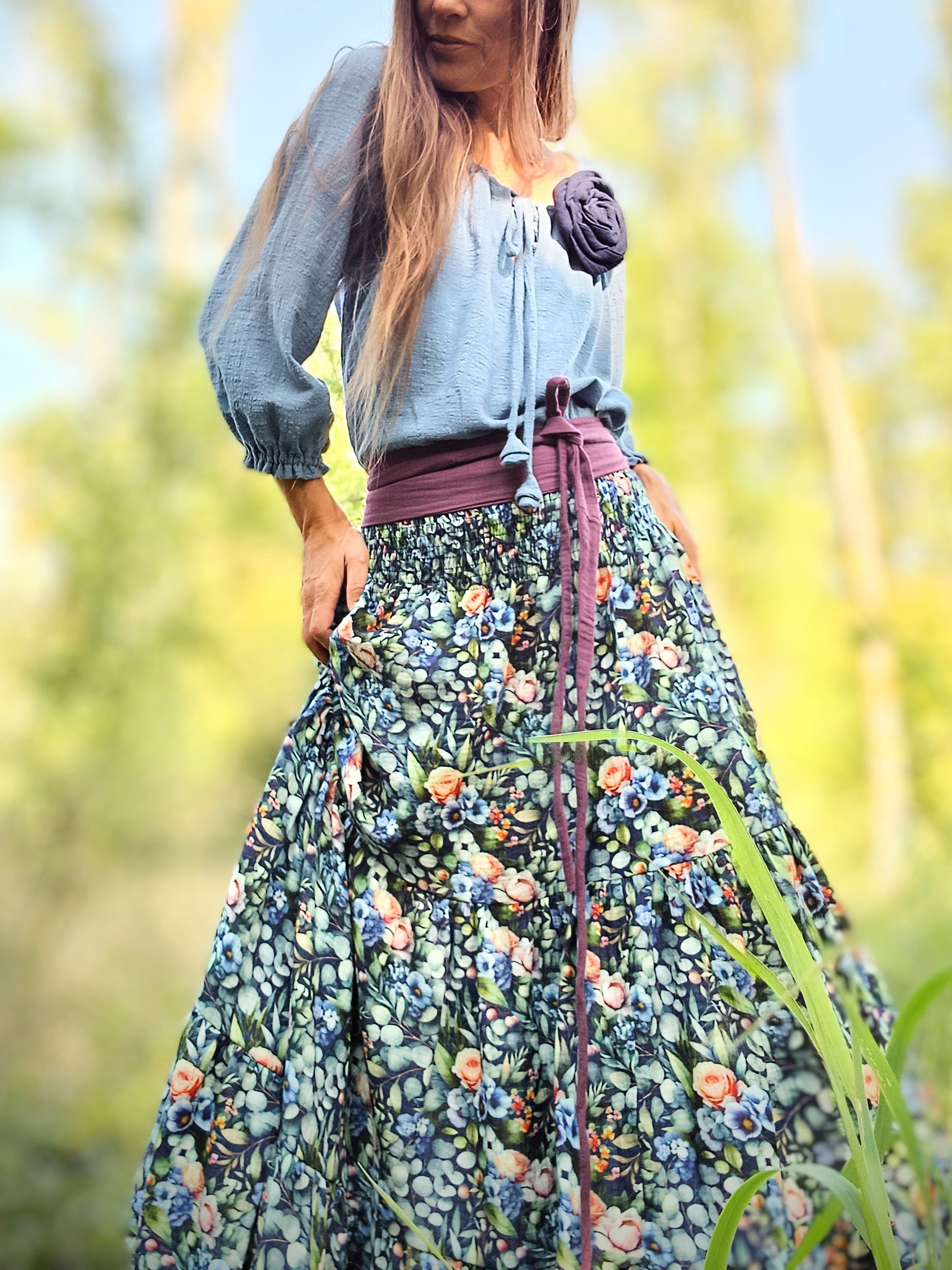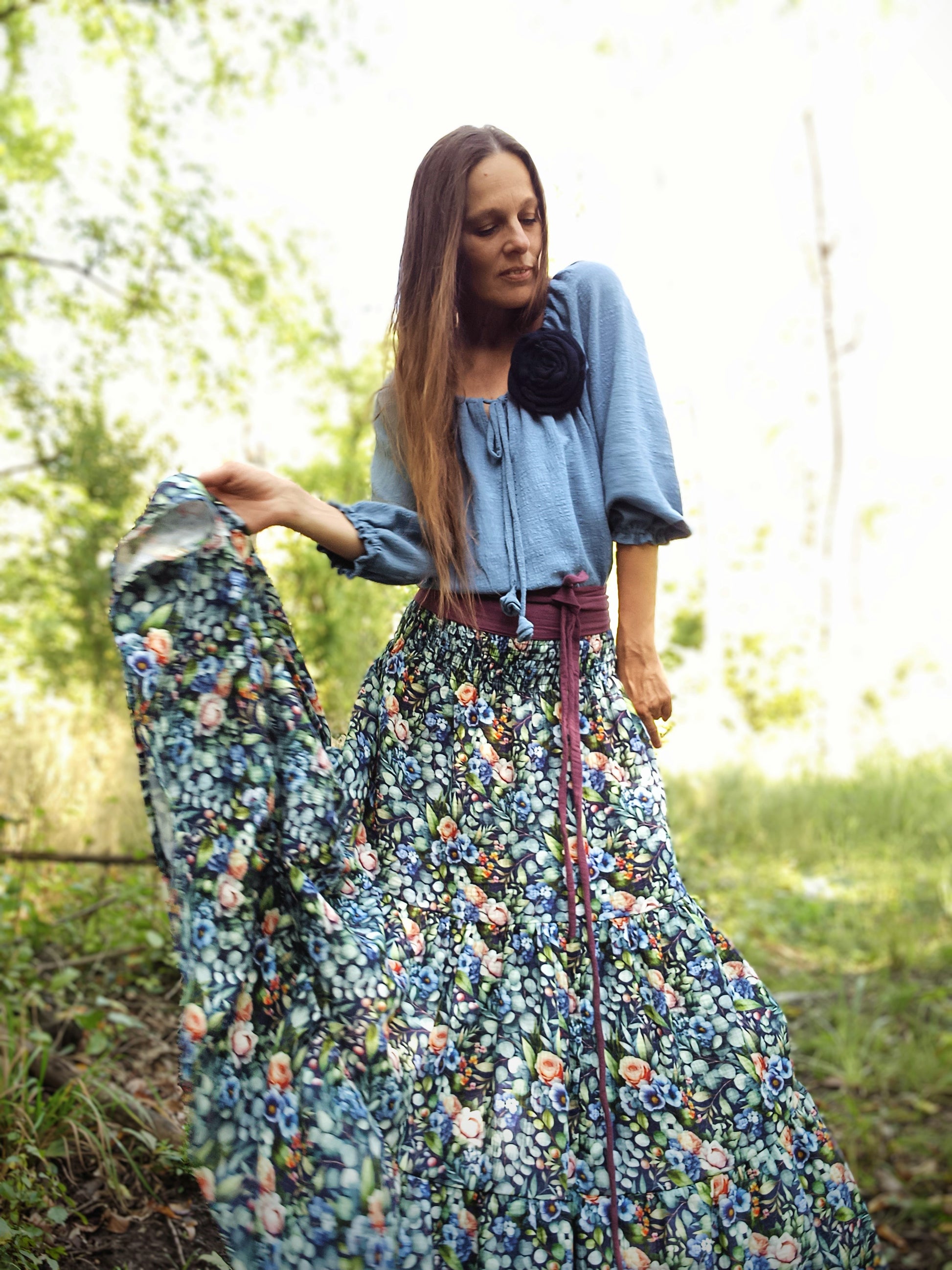 Maxi sukně kaskádovitá