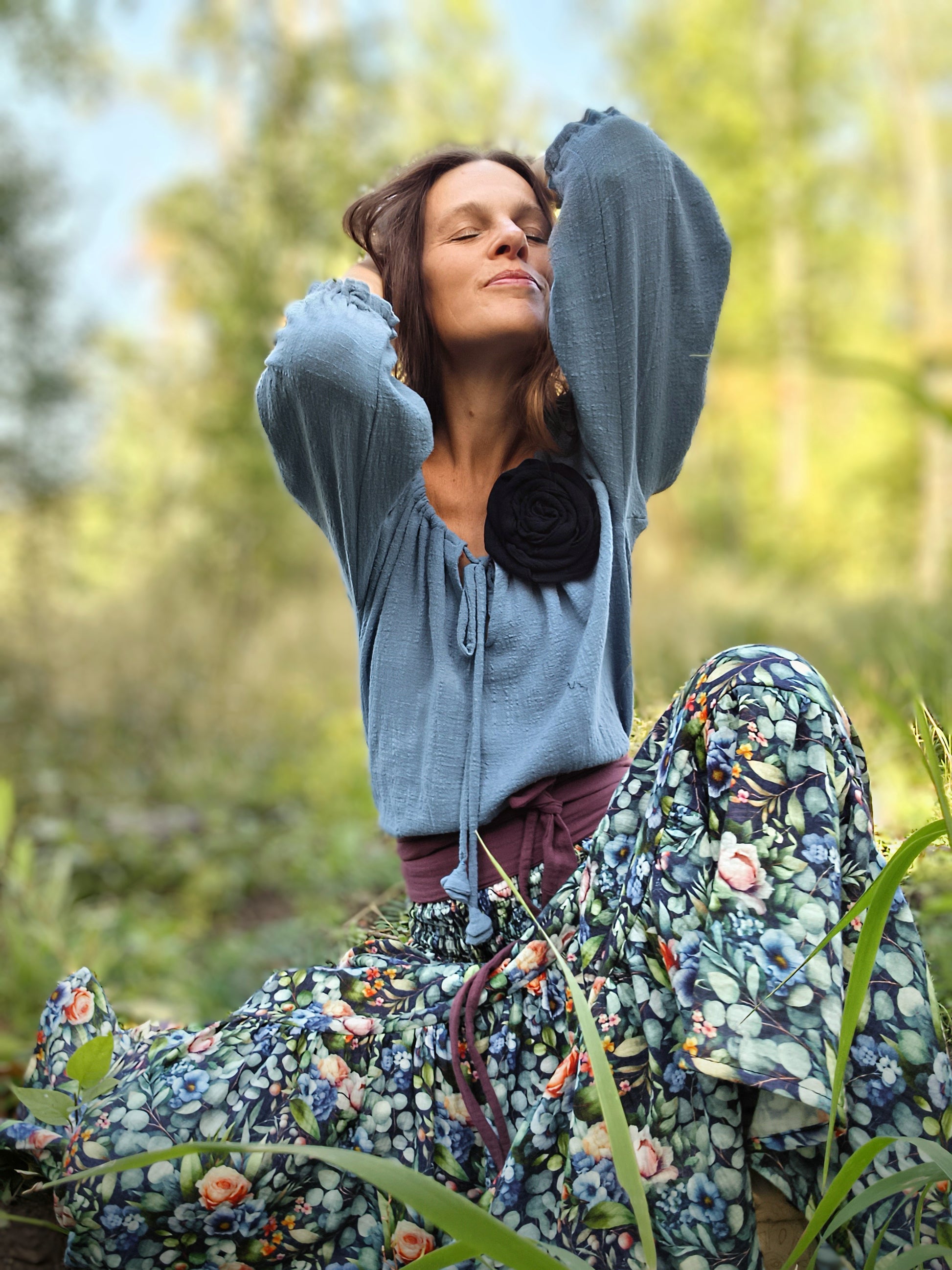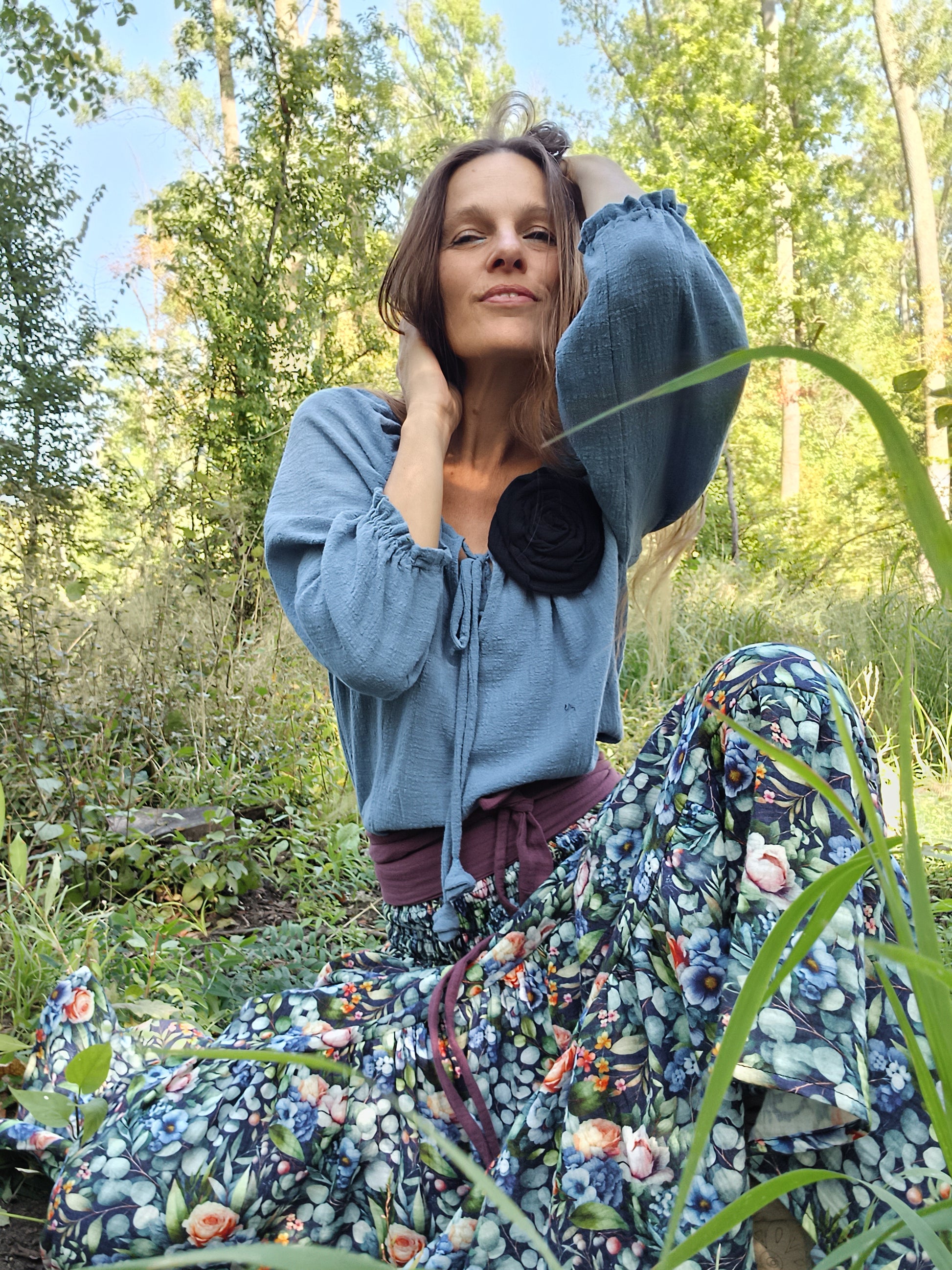 Vysoký žabičkovaný pás krásné obepne až lehce k bokům, čímž vytváří krásnou postavu a štíhlý pás