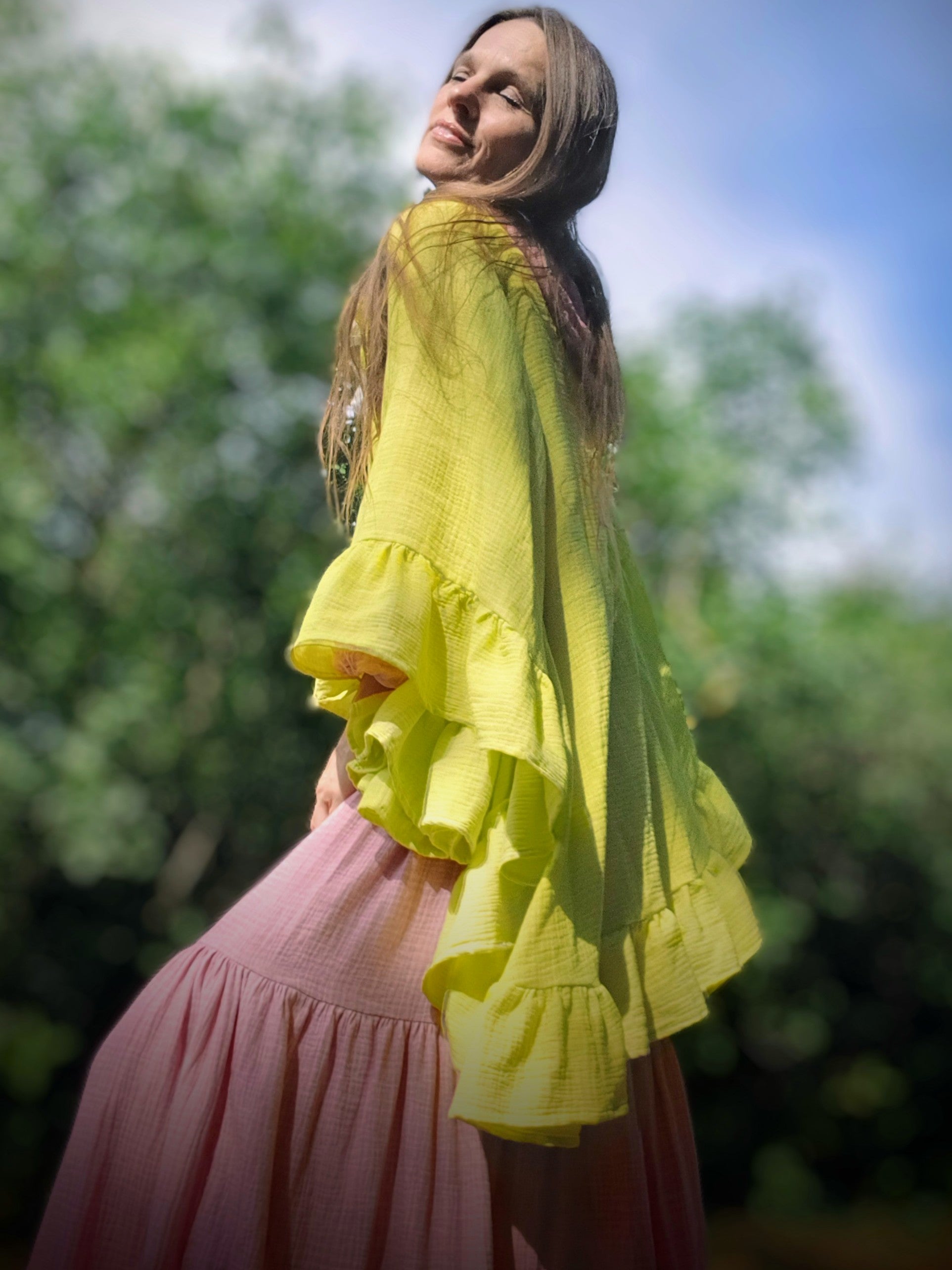 Materiál mušelín vytvářející překrásné vlnění sukně při chůzi, právě díky velkému objemu spodního volánu
