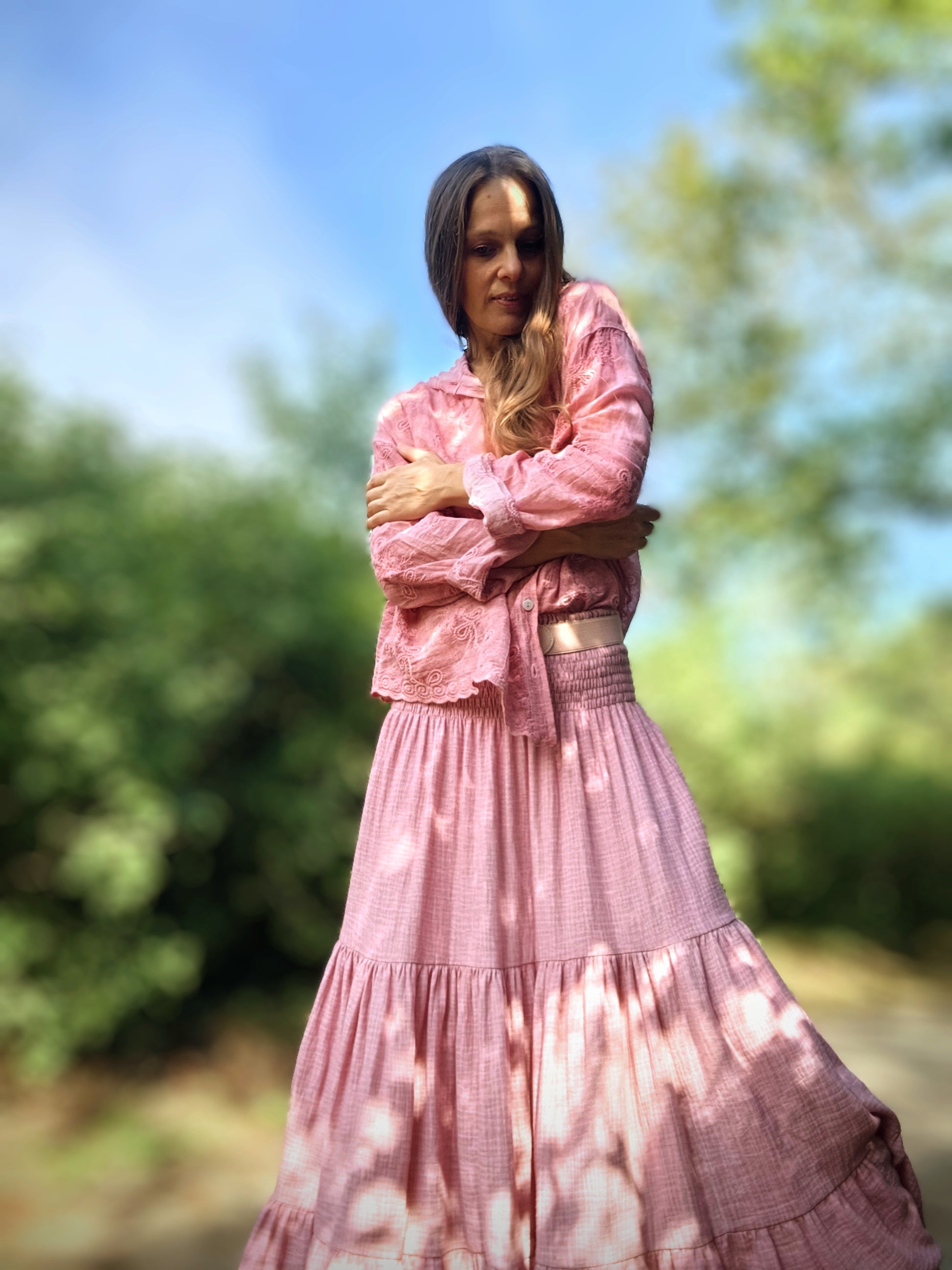 MAXI SUKNĚ VINTAGE RŮŽOVÁ