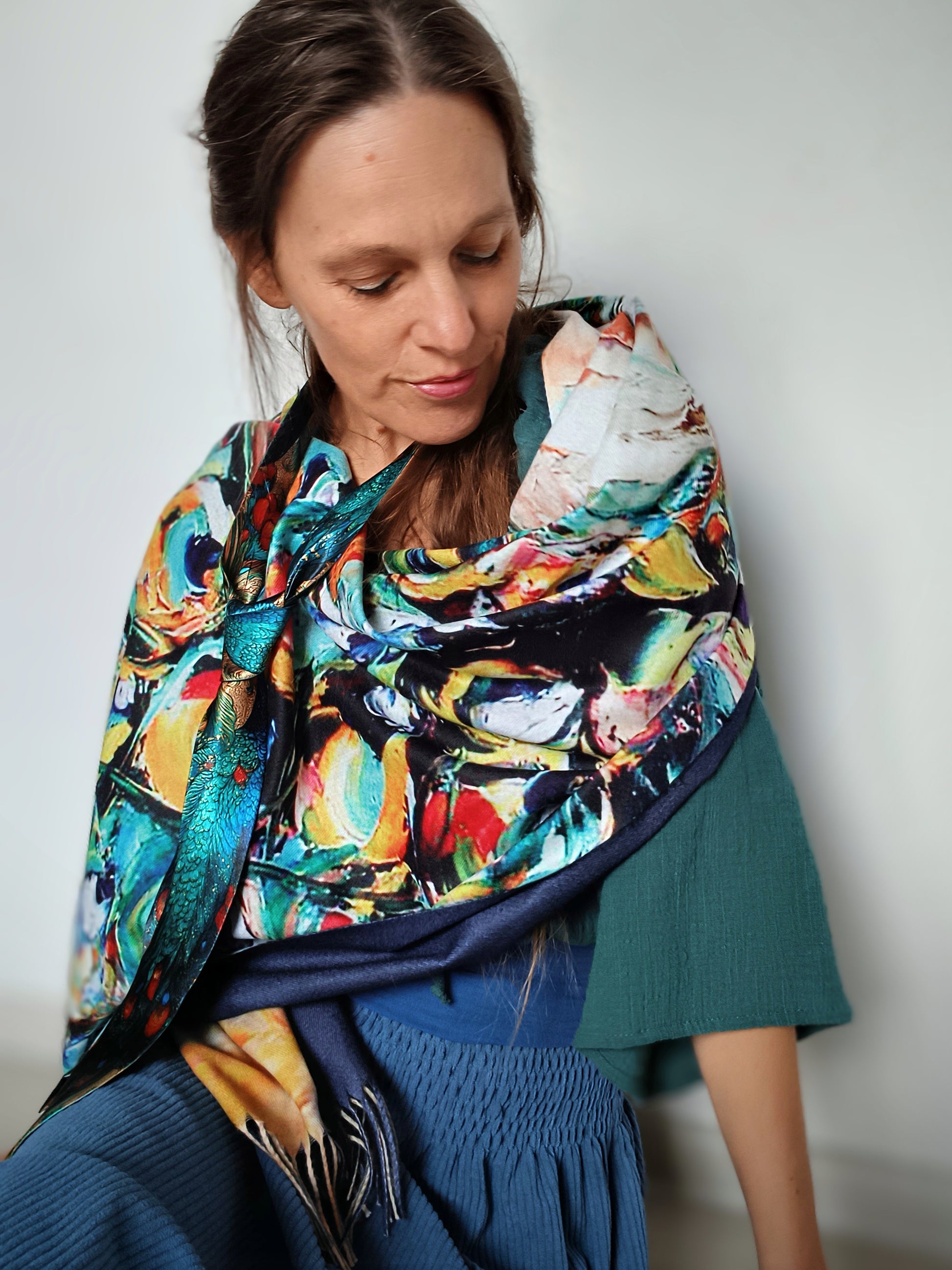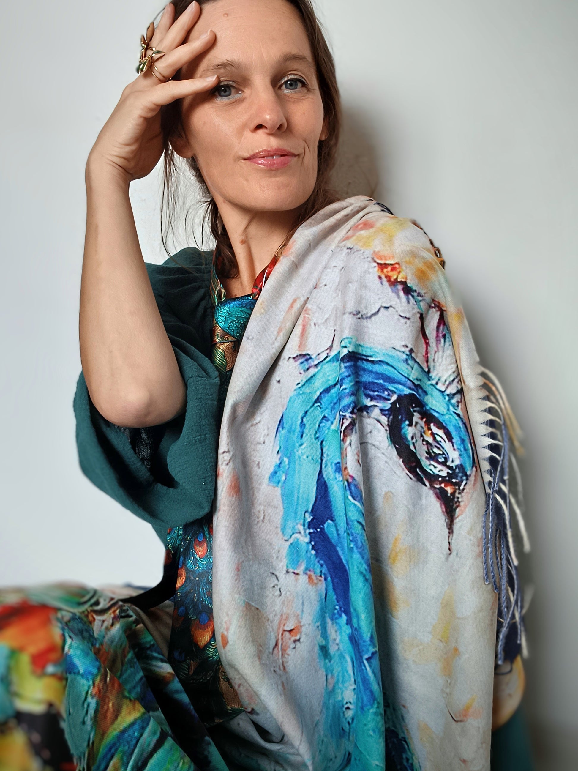 PŘEKRÁSNÝ KAŠMÍROVÝ PLÉD VELKÝ PÁV