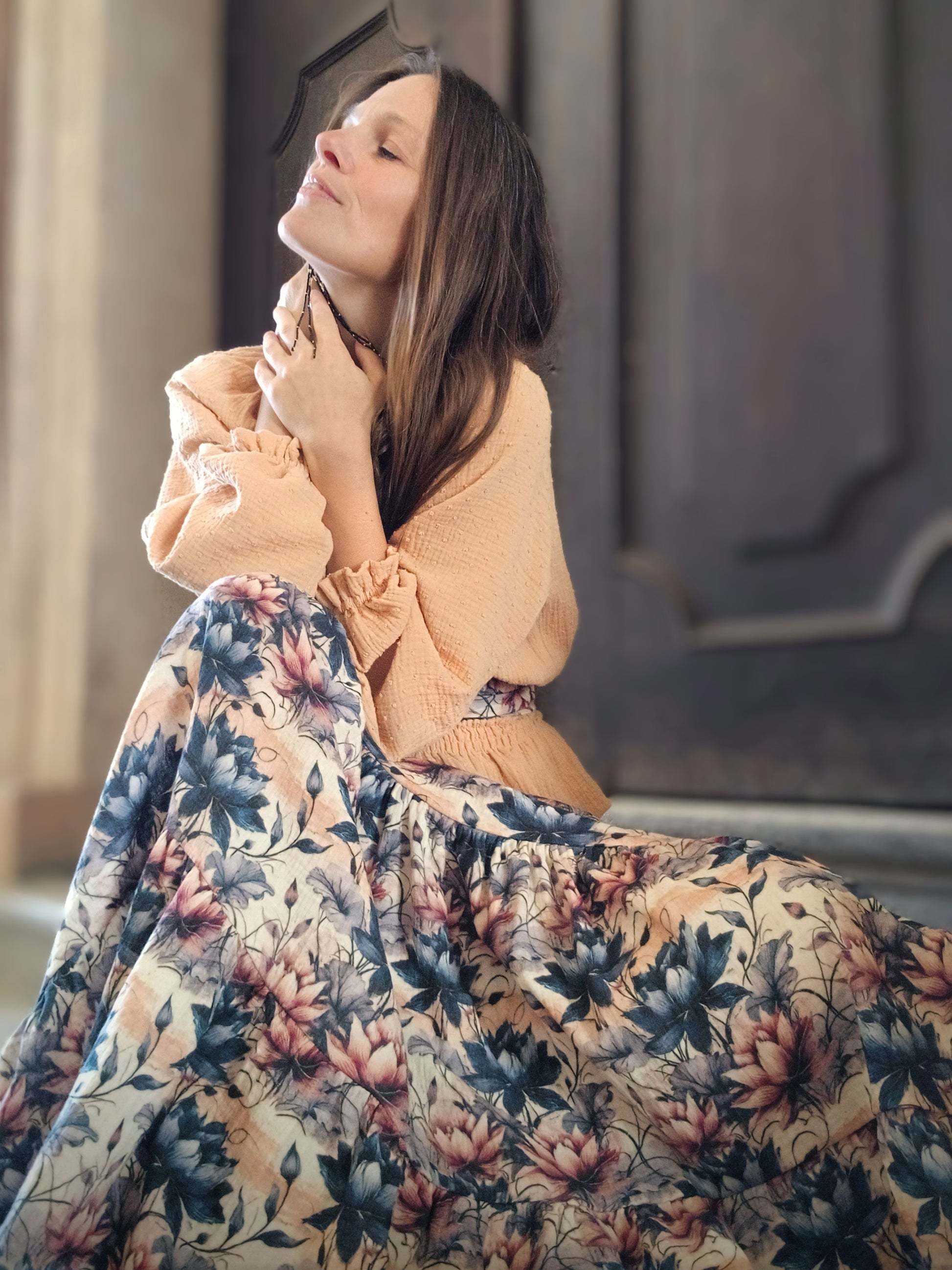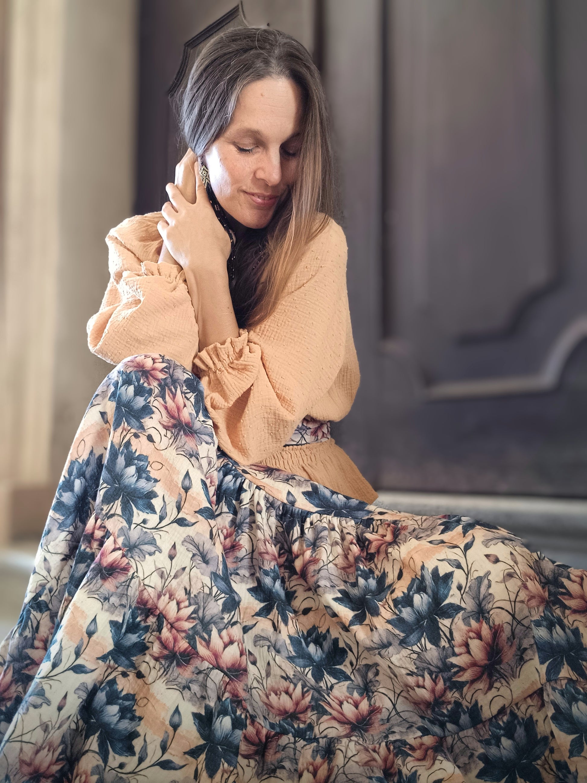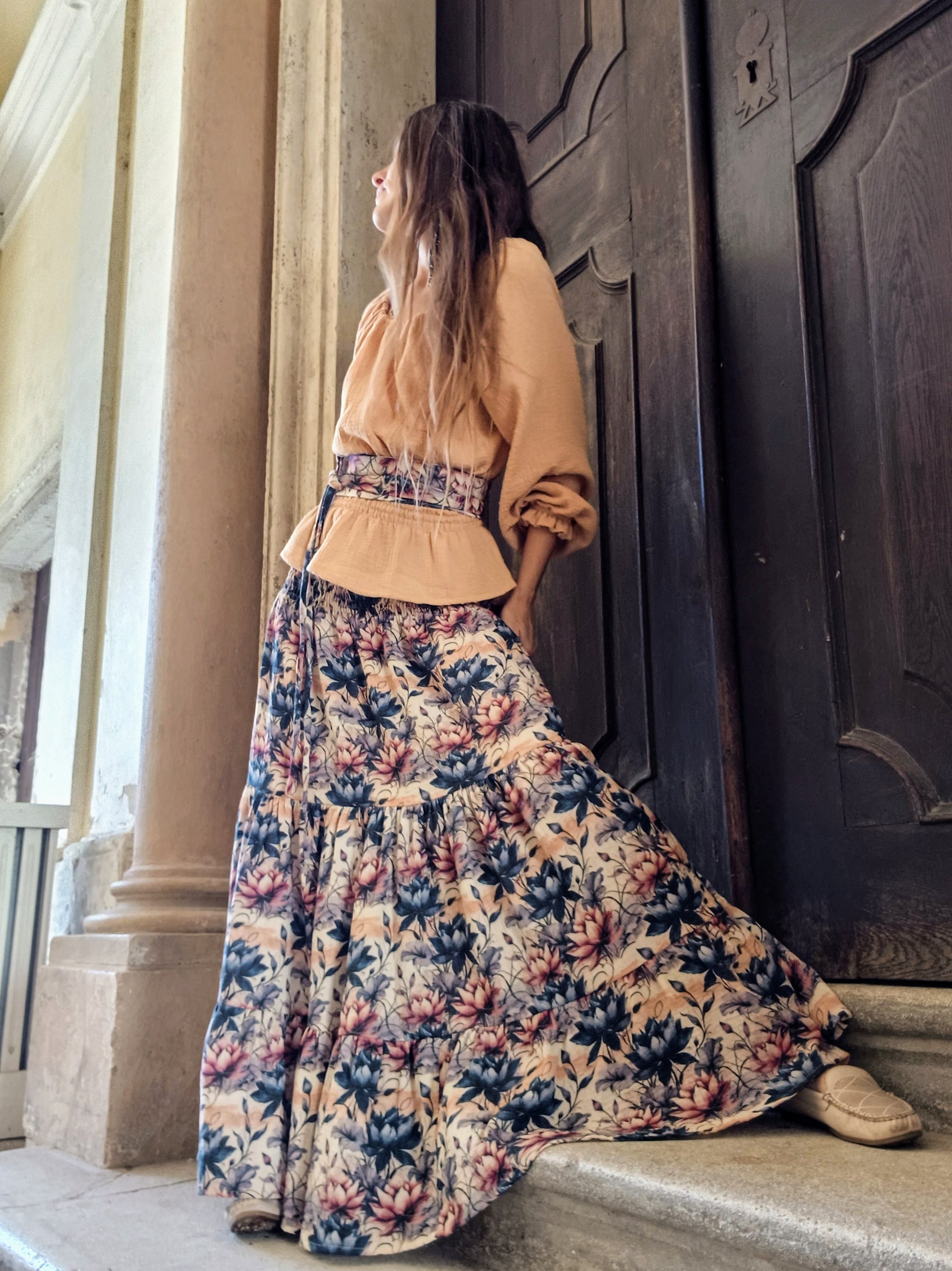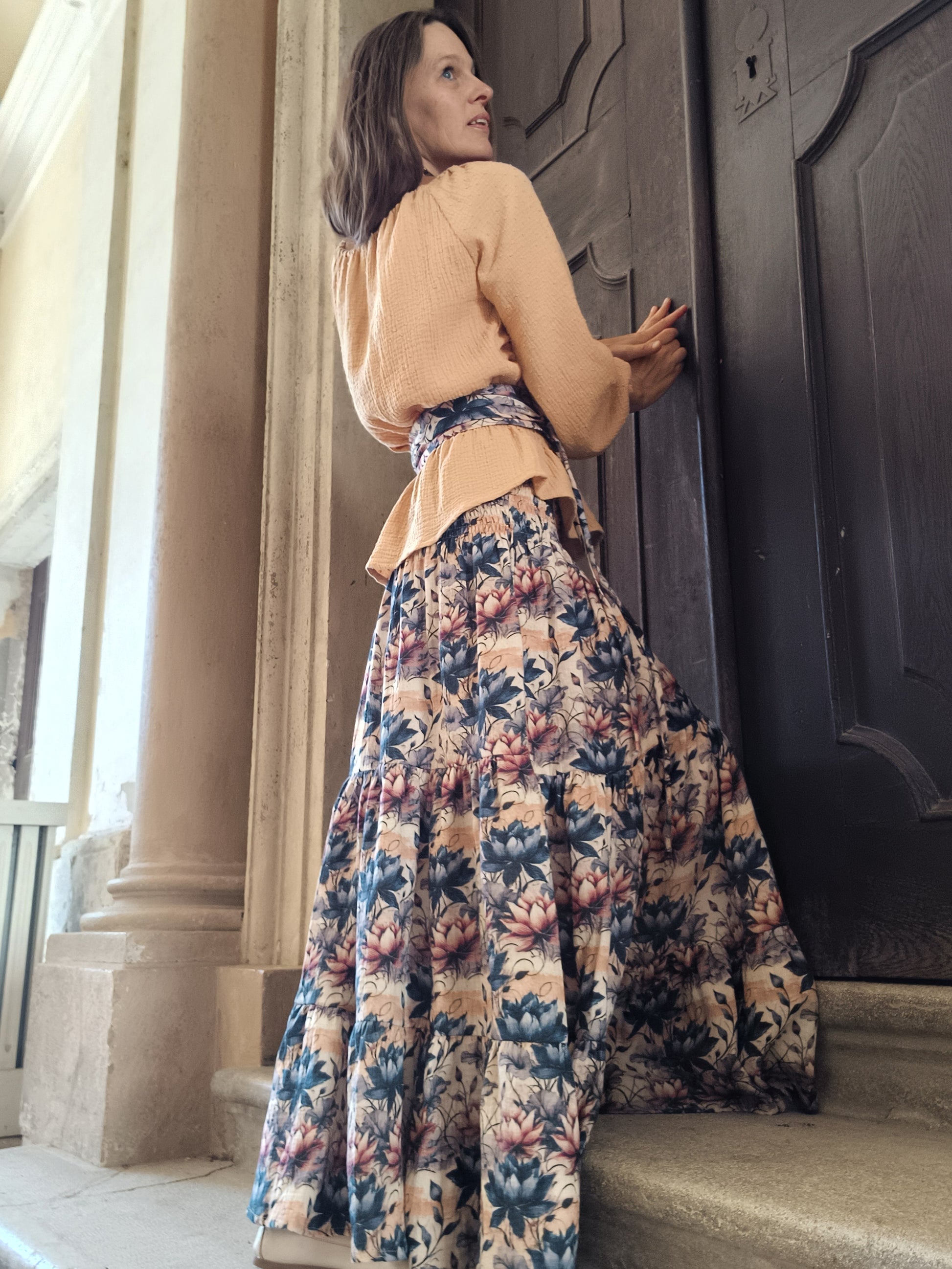 MAXI SUKNĚ MUŠELÍNOVÁ DESIGNOVÁ