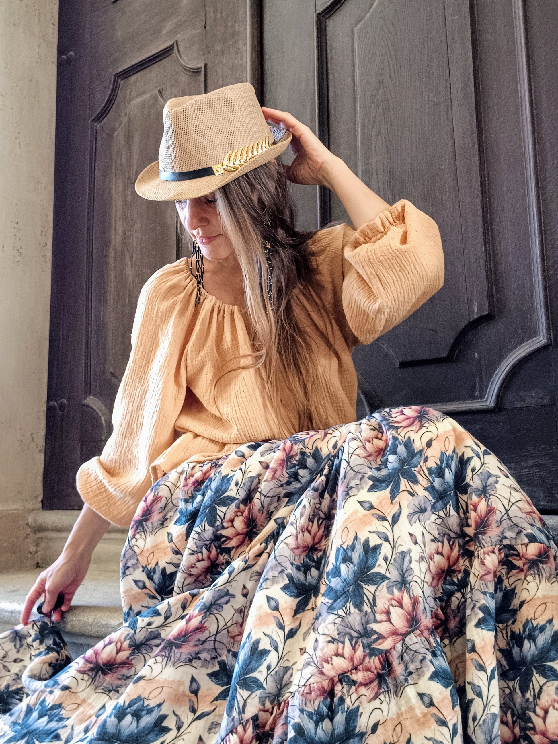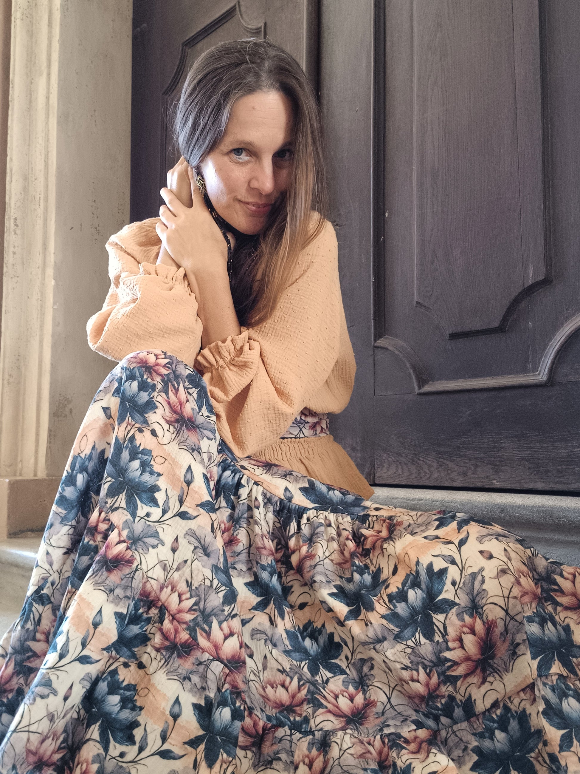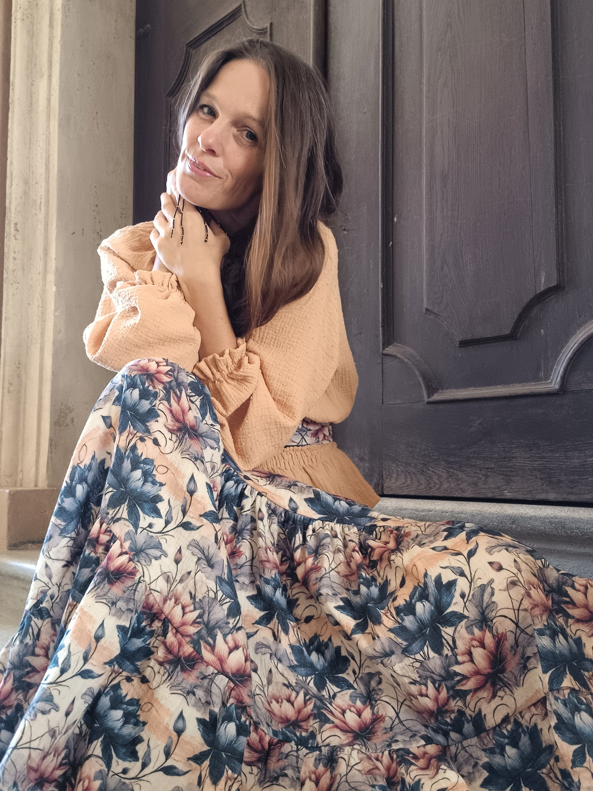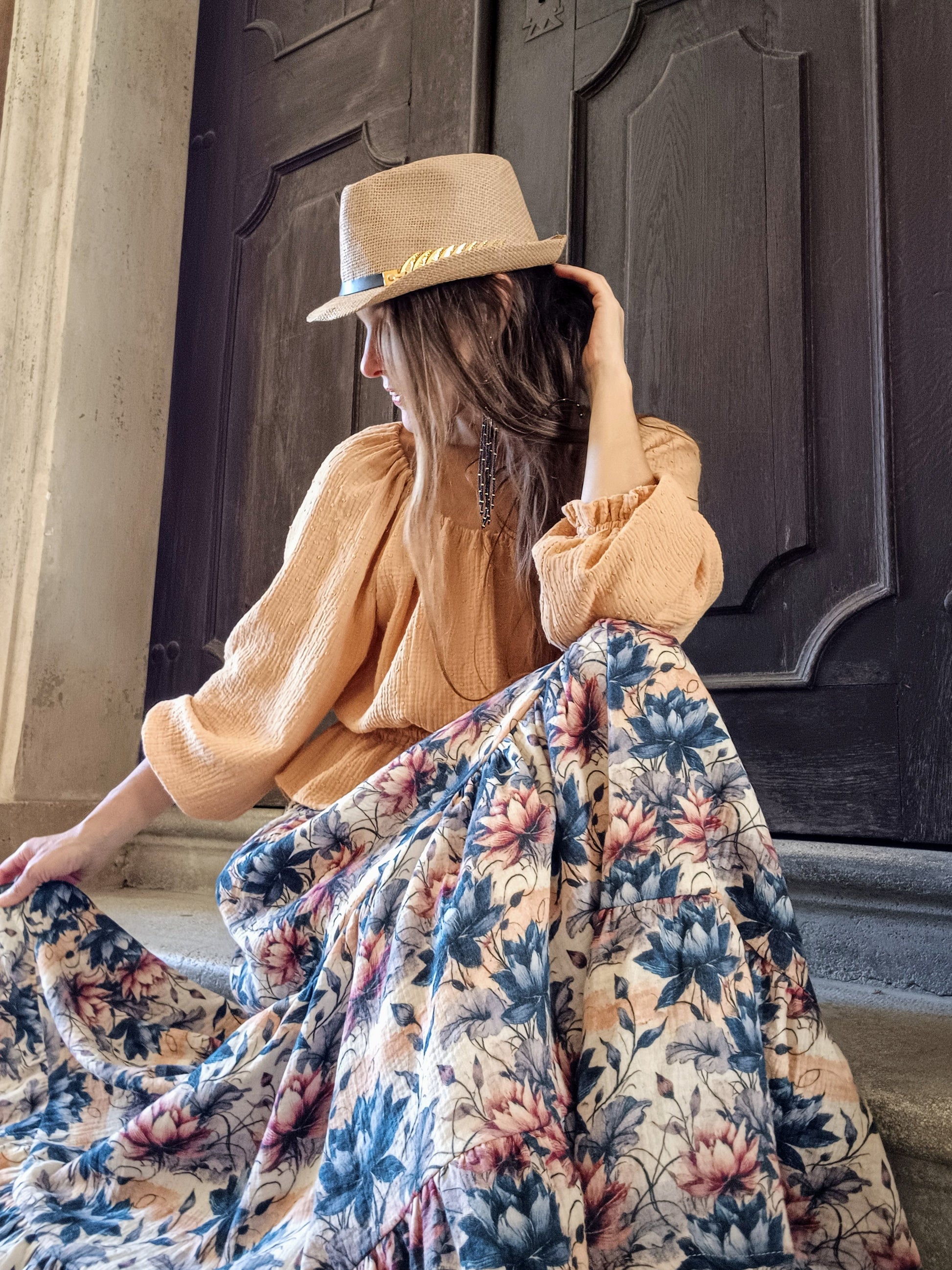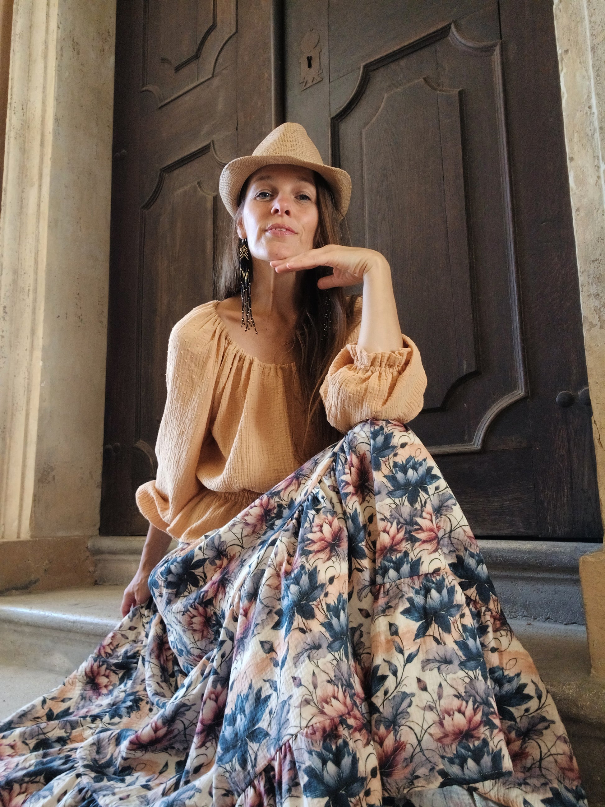 MAXI SUKNĚ MUŠELÍNOVÁ DESIGNOVÁ