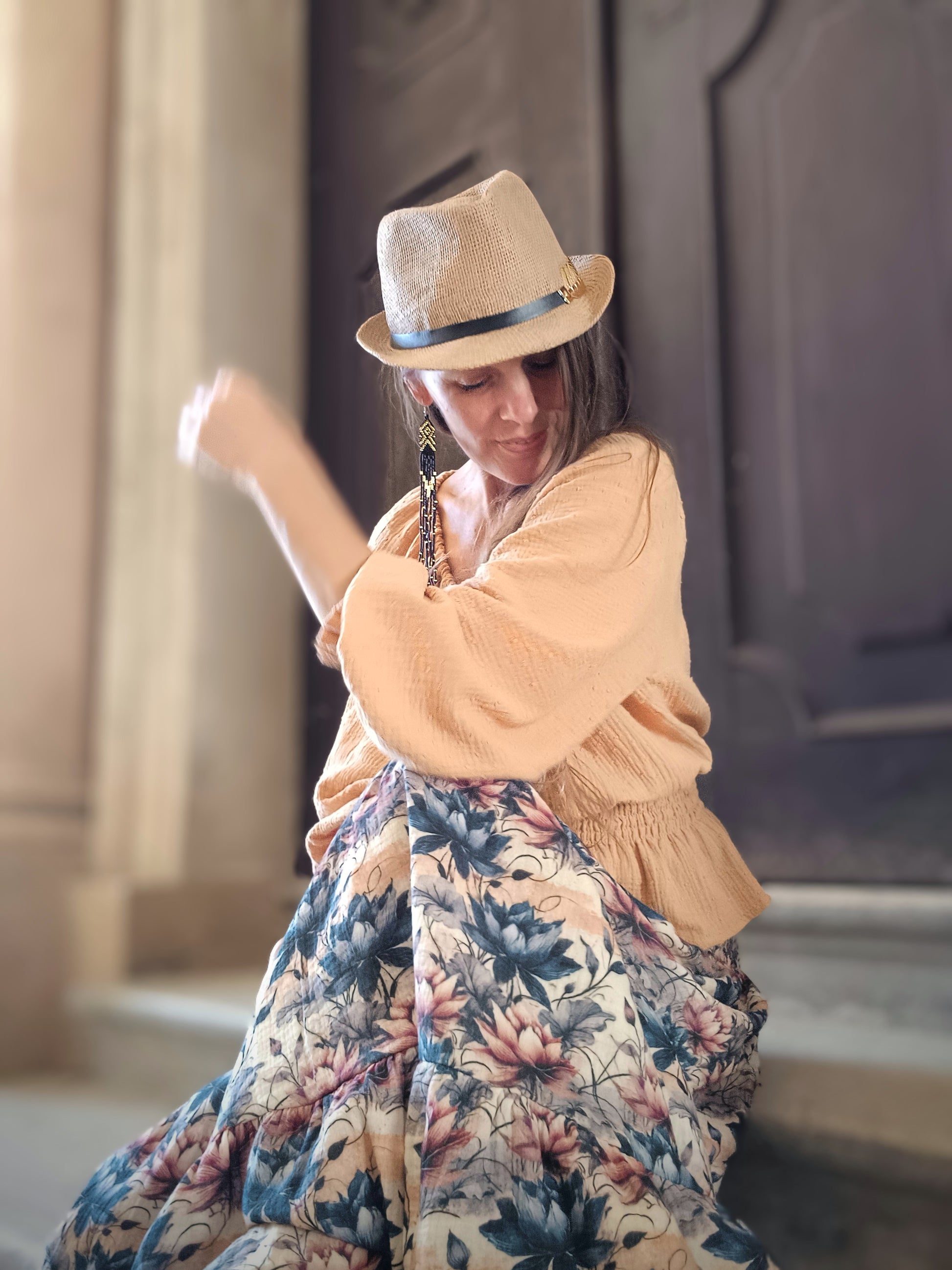 Materiál mušelín vytvářející překrásné vlnění sukně při chůzi, právě díky velkému objemu spodního volánu