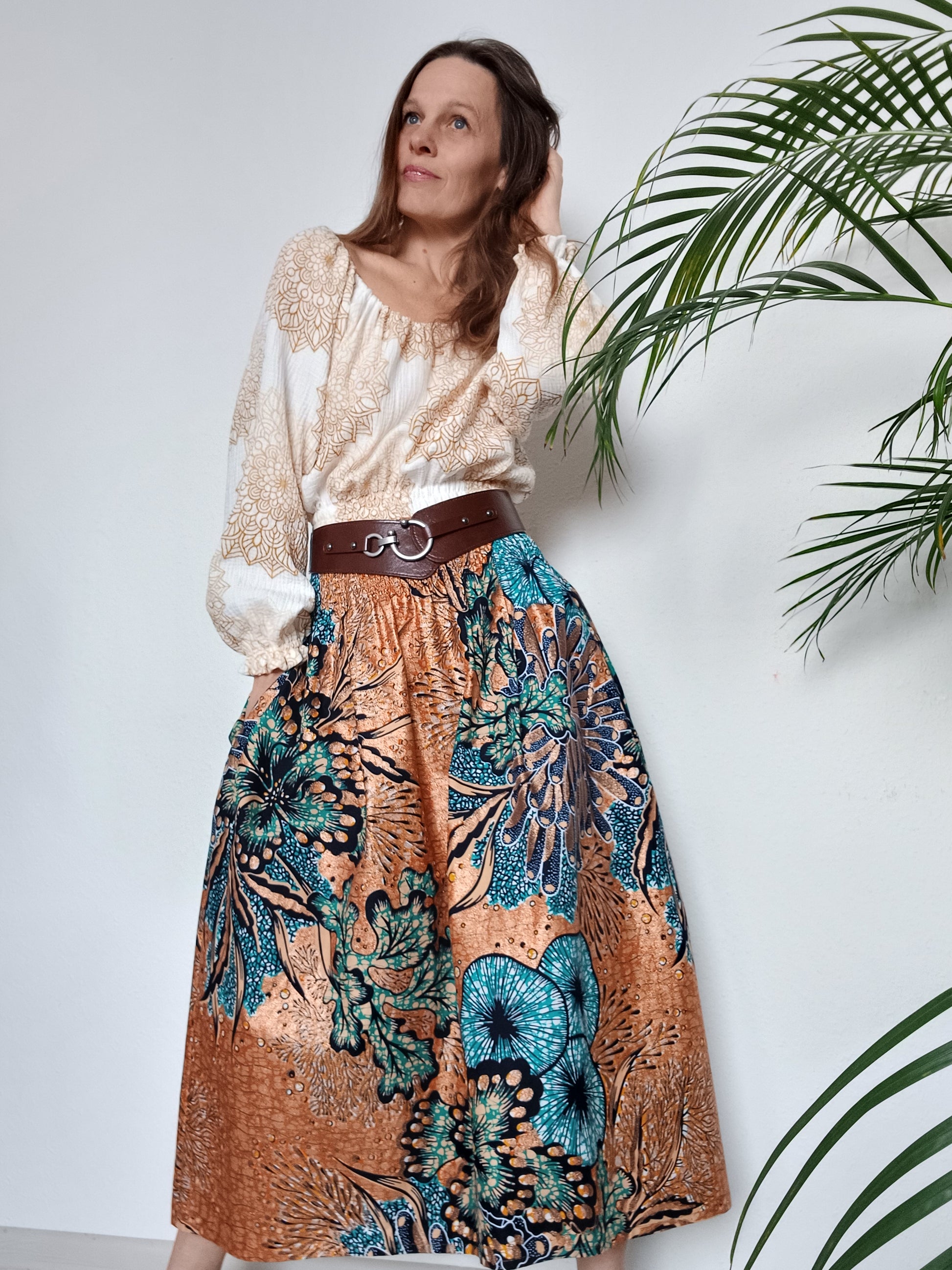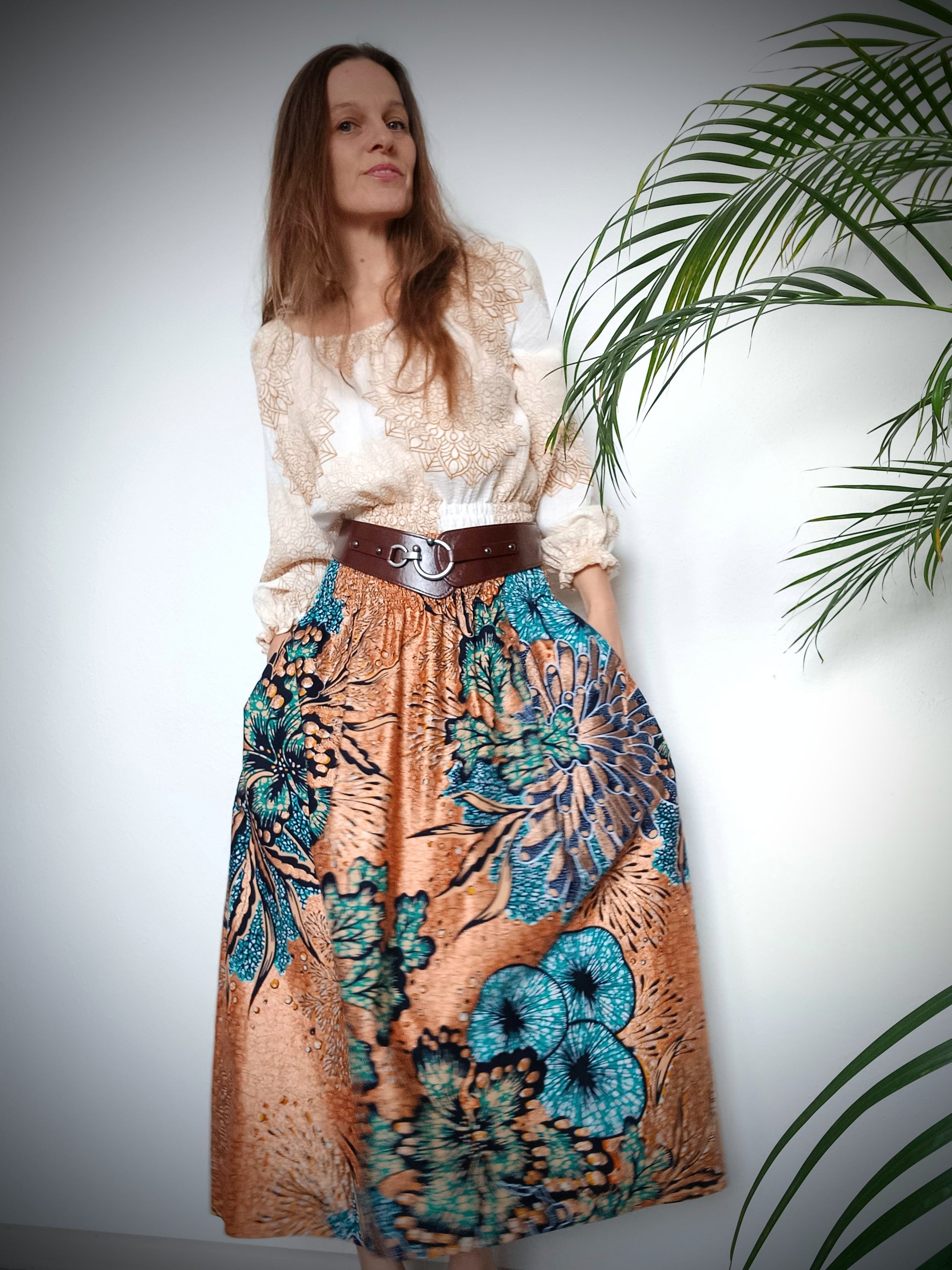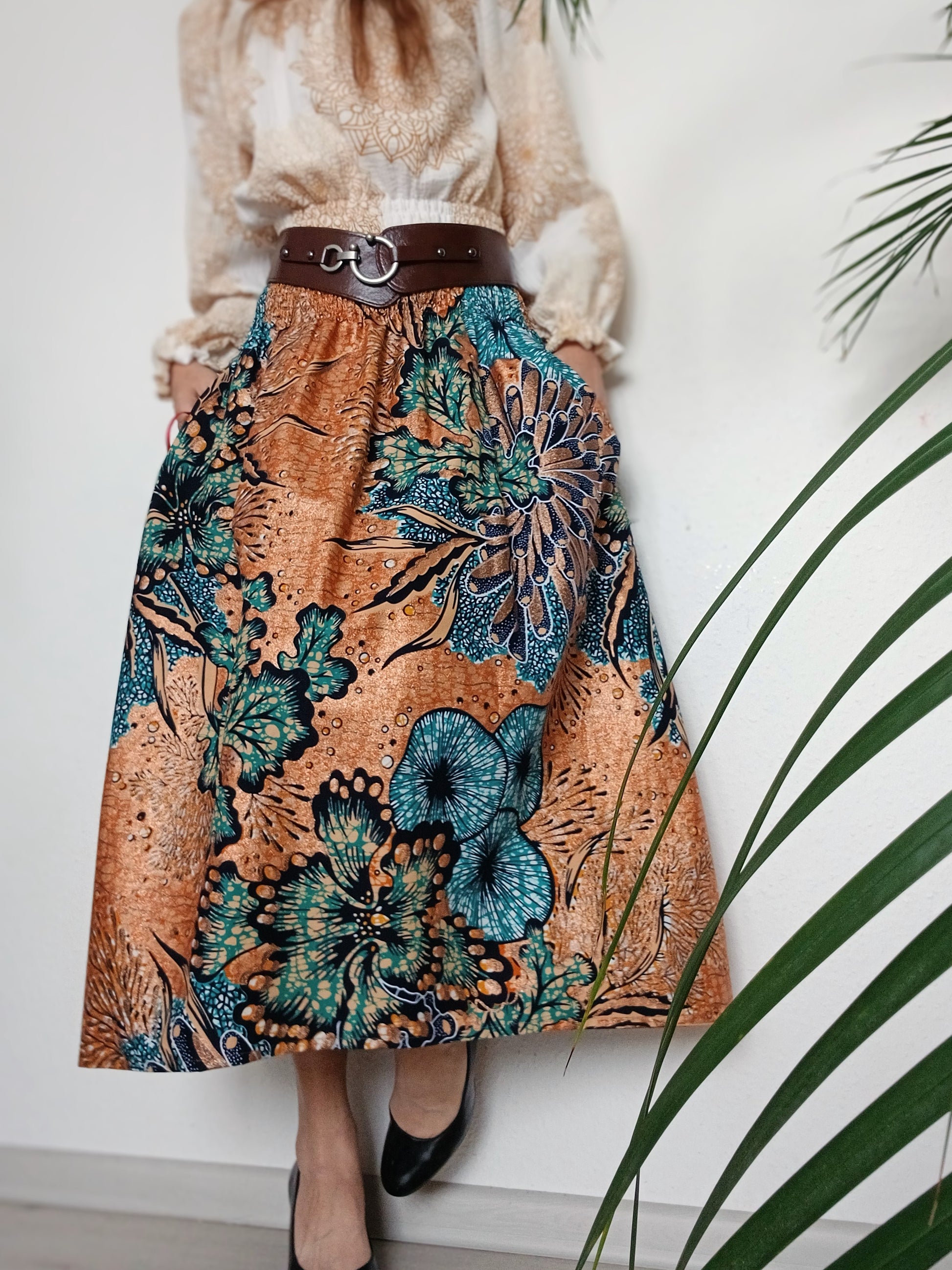 MĚDĚNÁ NÁDHERNÁ EXLUSÍVNÍ SUKNĚ S KAPSAMI
