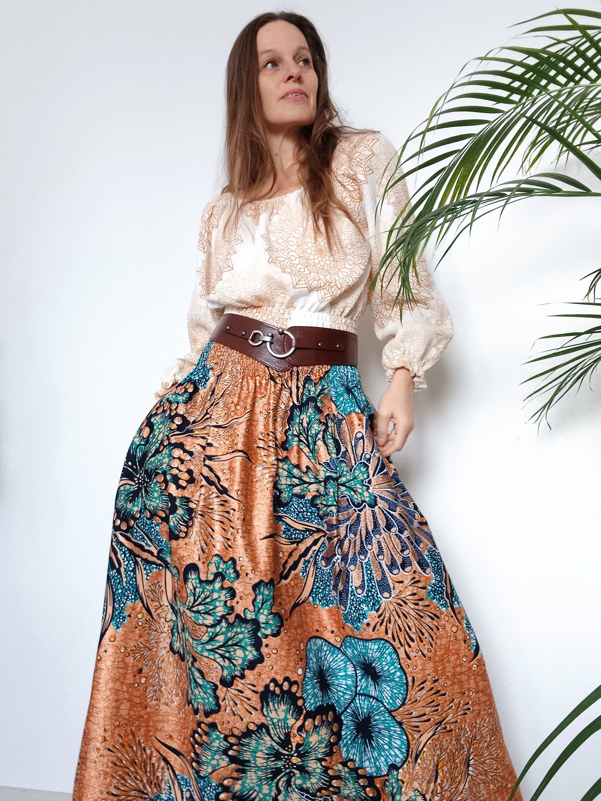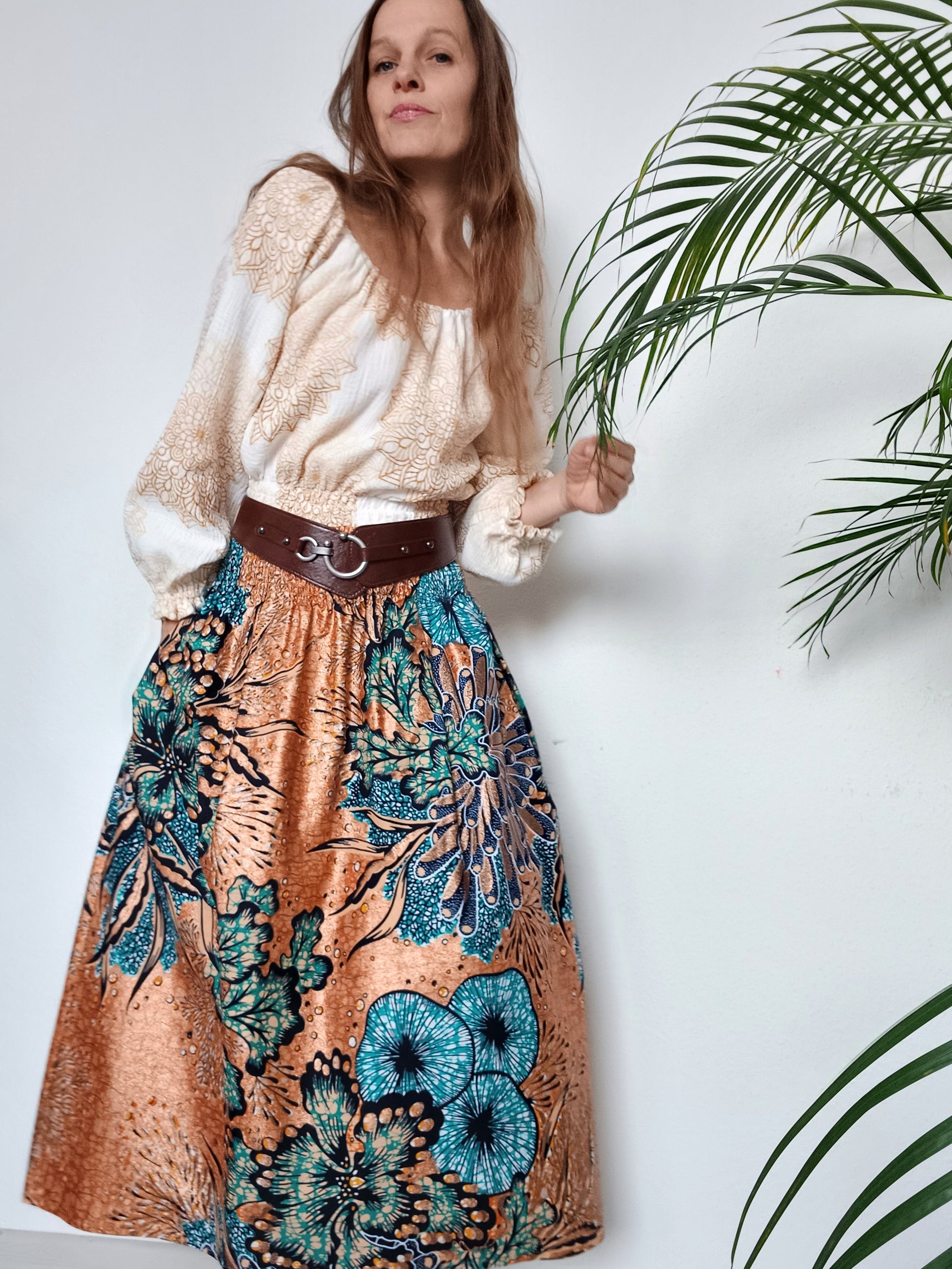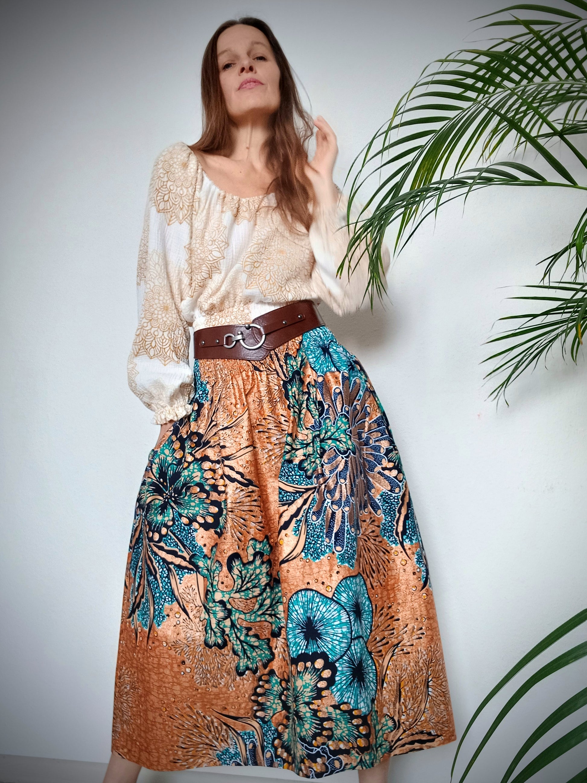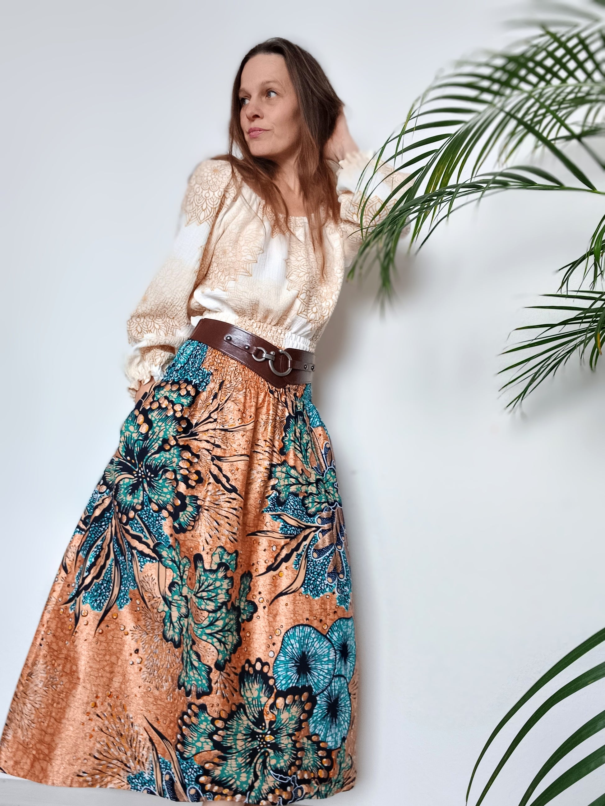 MĚDĚNÁ NÁDHERNÁ EXLUSÍVNÍ SUKNĚ S KAPSAMI