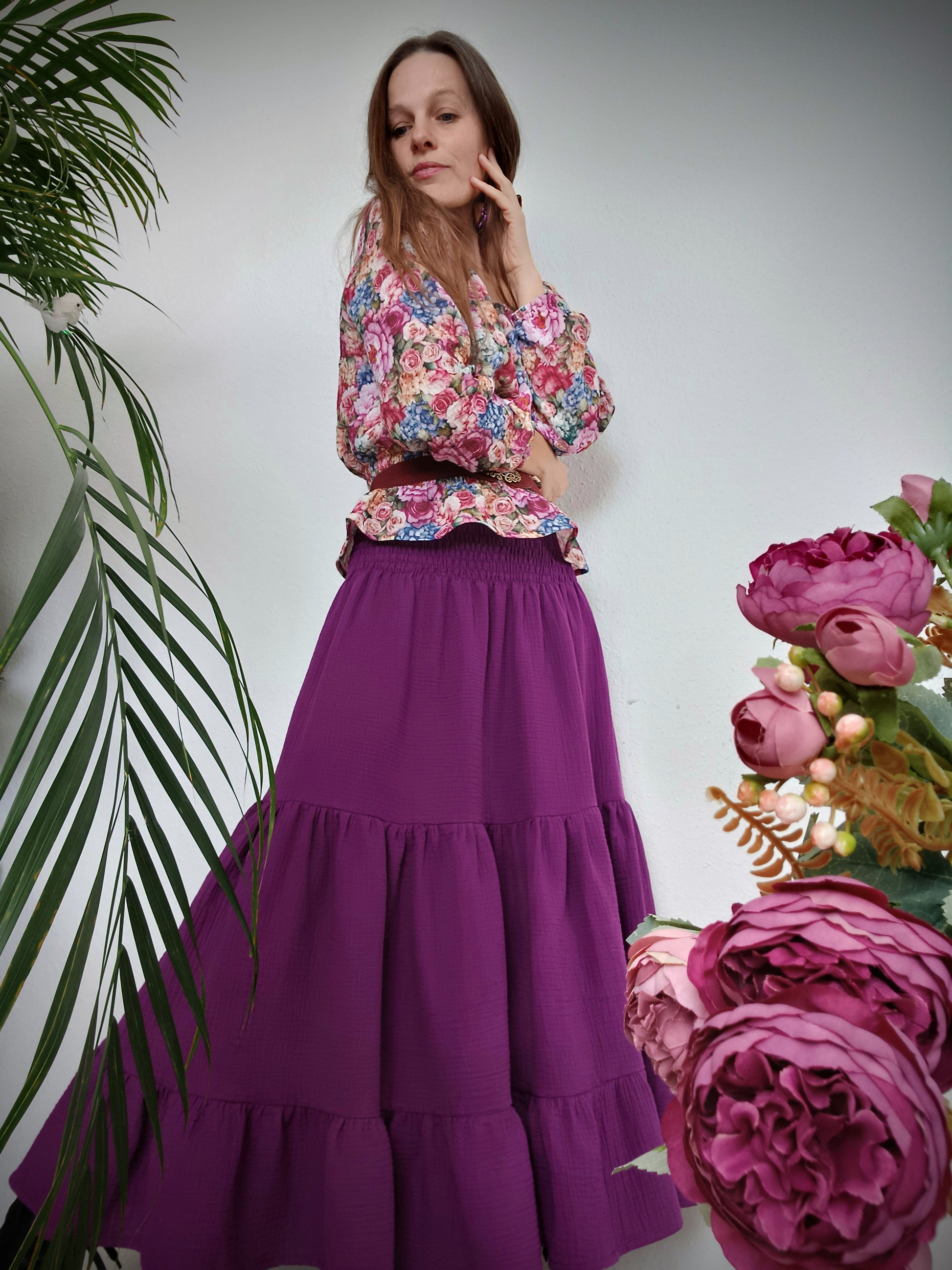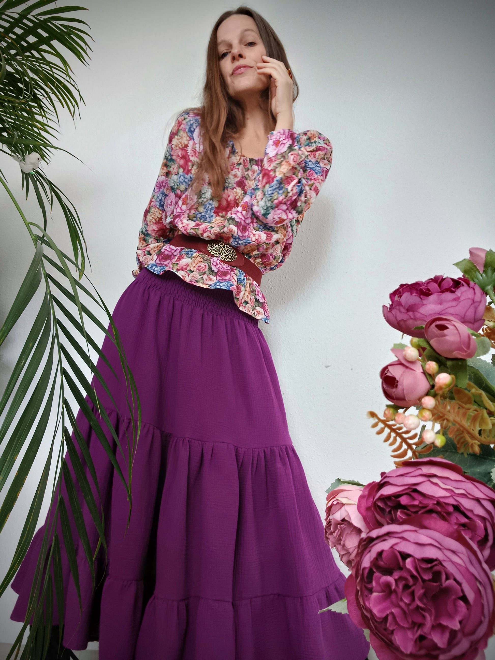 Materiál mušelín vytvářející překrásné vlnění sukně při chůzi, právě díky velkému objemu spodního volánu