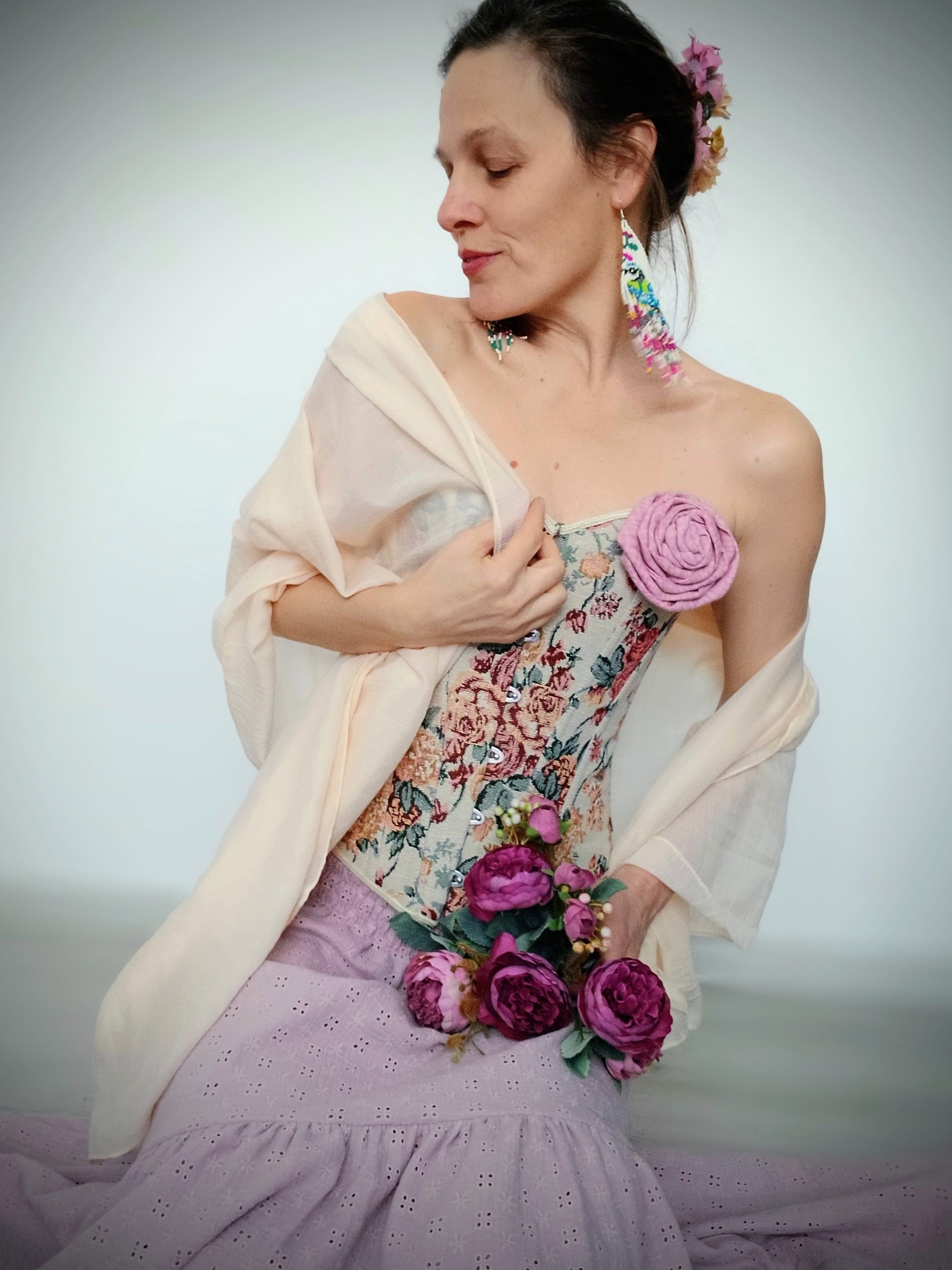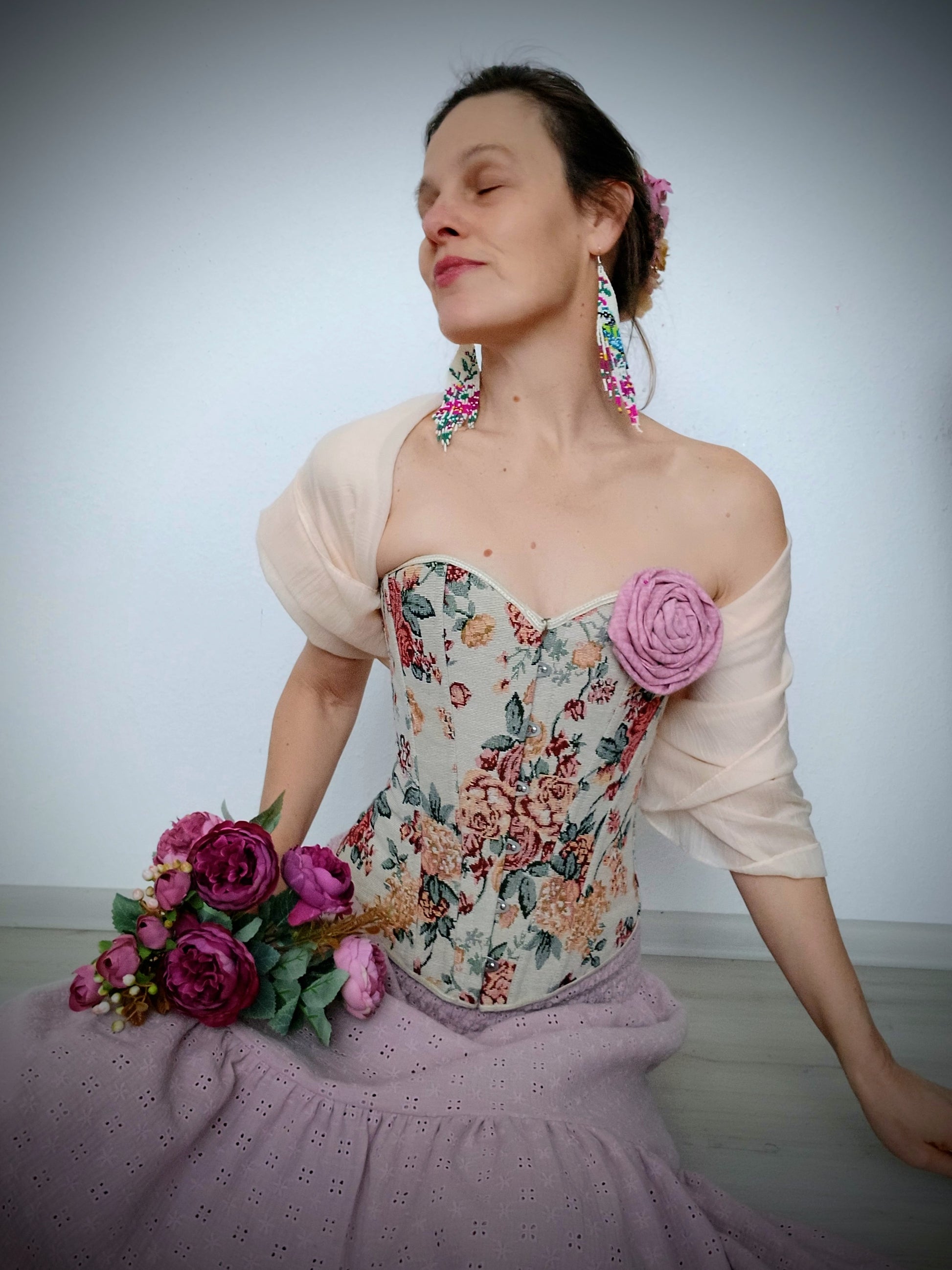 Materiál jemná,ale pevná tkanina ,kostice,Zapínání kovové střibrné