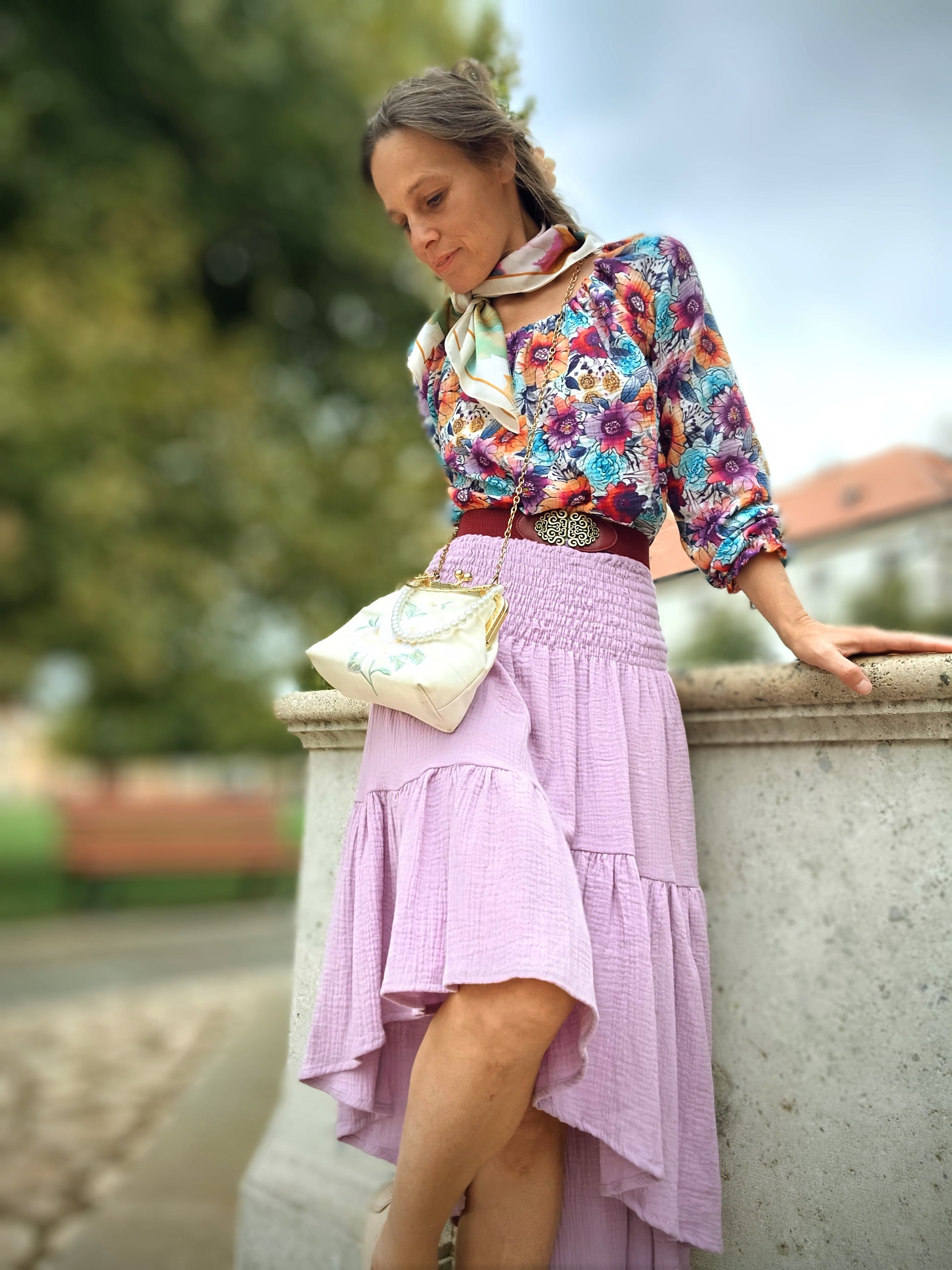 Nádherná sukně s jedním volánem ve střední délce ,asymetricky prodloužená